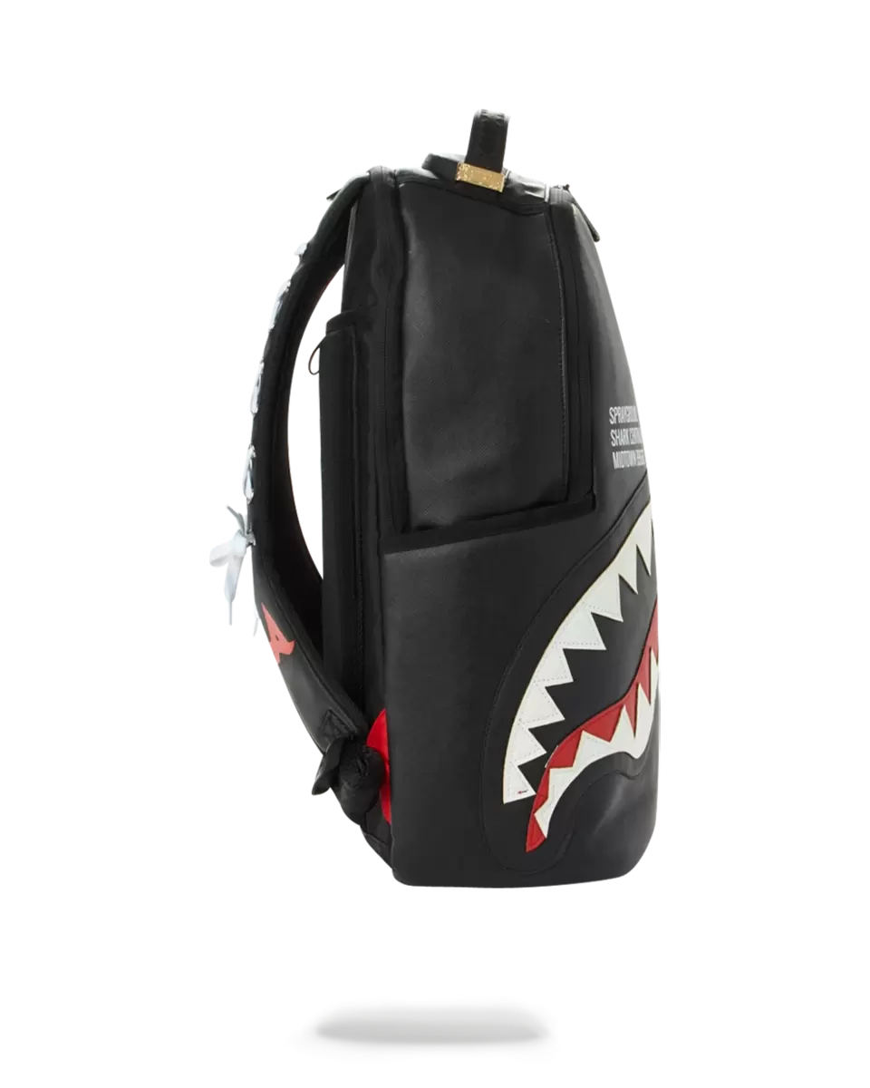 Dimensioni: 45,7 x 15,2 x 29,7 cm Tasca frontale con cerniera Tasche laterali Tasca portaoggetti con cerniera Scomparto separato in velluto per occhiali da sole Imbottitura posteriore ergonomica in rete Cinghie regolabili per una vestibilità personalizzata Cerniere nere con ferramenta in metallo Stemma “Sprayground Authentic” in metallo La tasca posteriore scorrevole si collega al bagaglio a mano per avere le mani libere