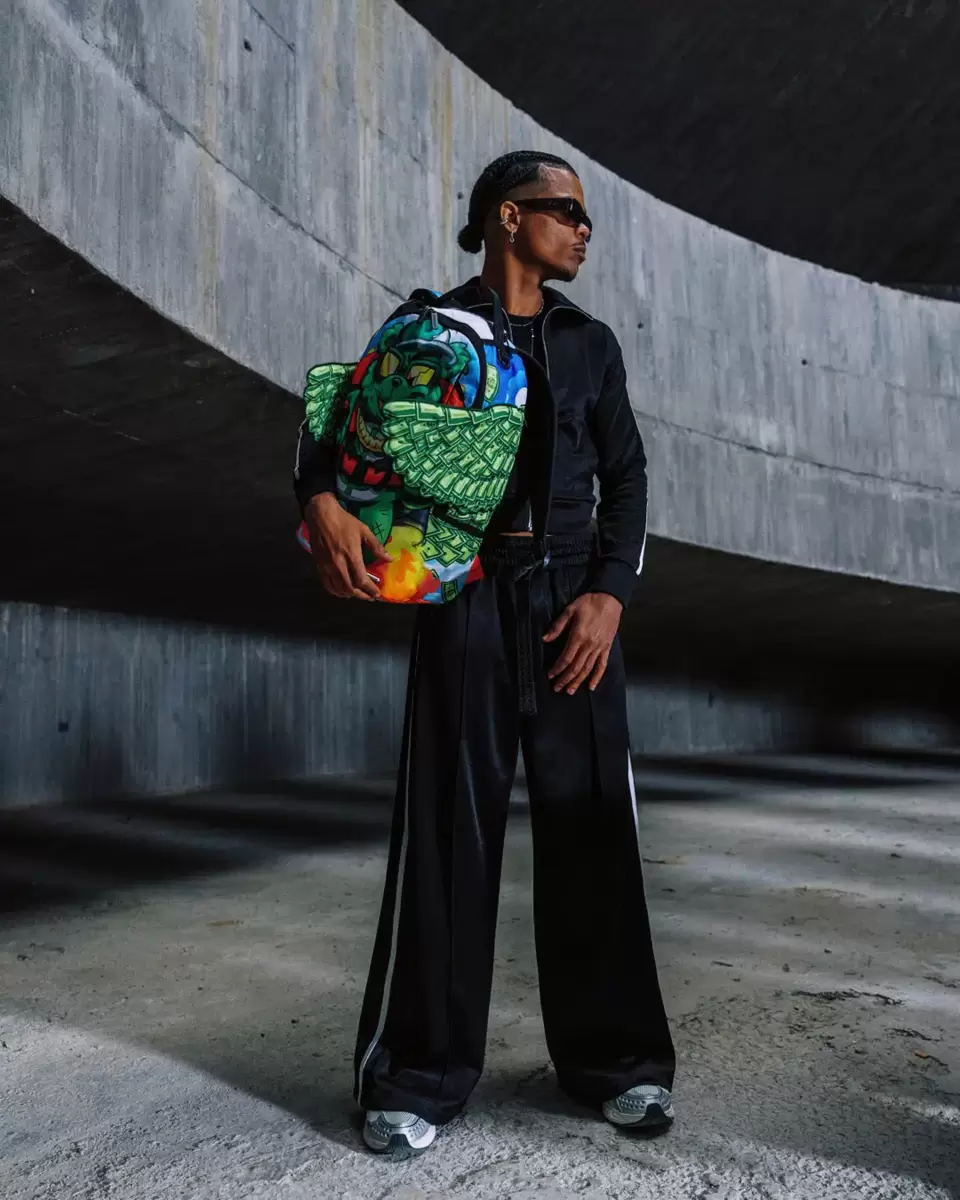 Dimensioni: 45,7 x 15,2 x 29,7 cm Tasca frontale con cerniera Tasche laterali Tasca portaoggetti con cerniera Scomparto separato in velluto per occhiali da sole Imbottitura posteriore ergonomica in rete Cinghie regolabili per una vestibilità personalizzata Cerniere dorate con parti metalliche Stemma in metallo “Sprayground Authentic” La tasca posteriore scorrevole si collega al bagaglio a mano per avere le mani libere