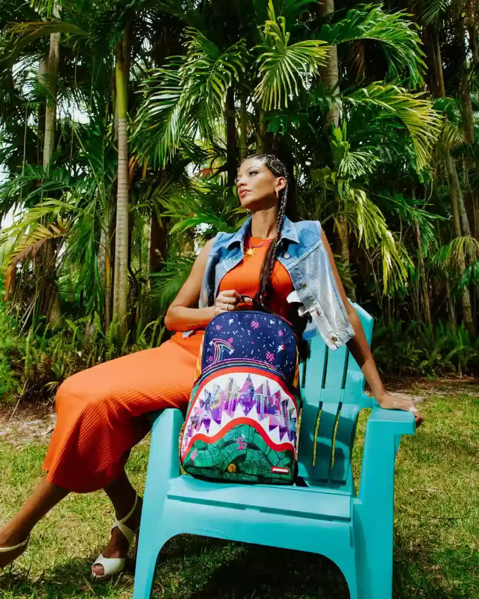 Dimensioni: 18″ x 6″ x 11,5″ Tasca frontale con cerniera Tasche laterali Tasca portaoggetti con cerniera Scomparto separato in velluto per occhiali da sole Imbottitura posteriore ergonomica in rete Cinghie regolabili per una vestibilità personalizzata Cerniere dorate con ferramenta in metallo Stemma in metallo “Sprayground Authentic” La tasca posteriore scorrevole si collega al bagaglio a mano per avere le mani libere