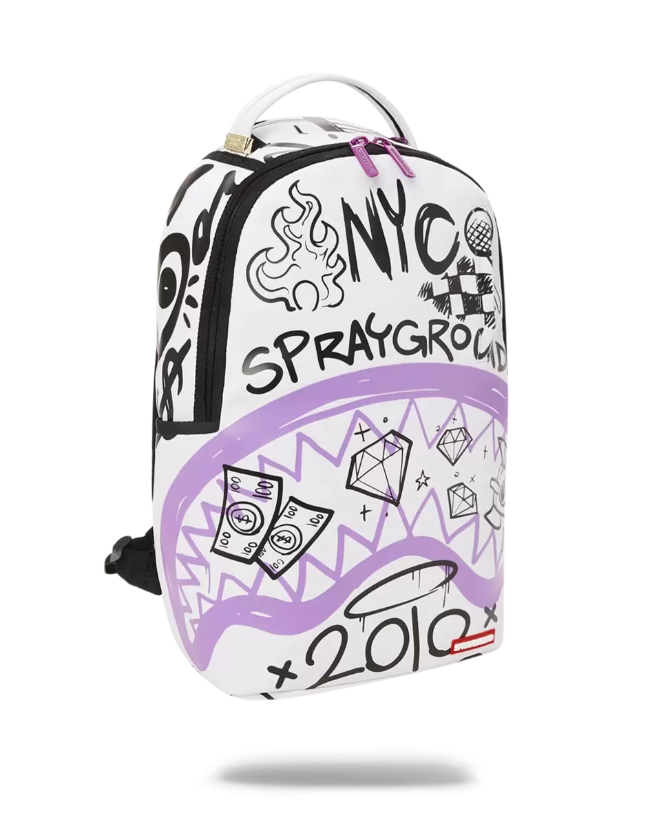Dimensioni: 18″ x 6″ x 11,5″ Tasca frontale con cerniera Tasche laterali Tasca portaoggetti con cerniera Scomparto separato in velluto per occhiali da sole Imbottitura posteriore ergonomica in rete Cinghie regolabili per una vestibilità personalizzata Cerniere dorate con hardware in metallo Stemma “Sprayground Authentic” in metallo La manica posteriore scorrevole si collega al bagaglio a mano per avere le mani libere