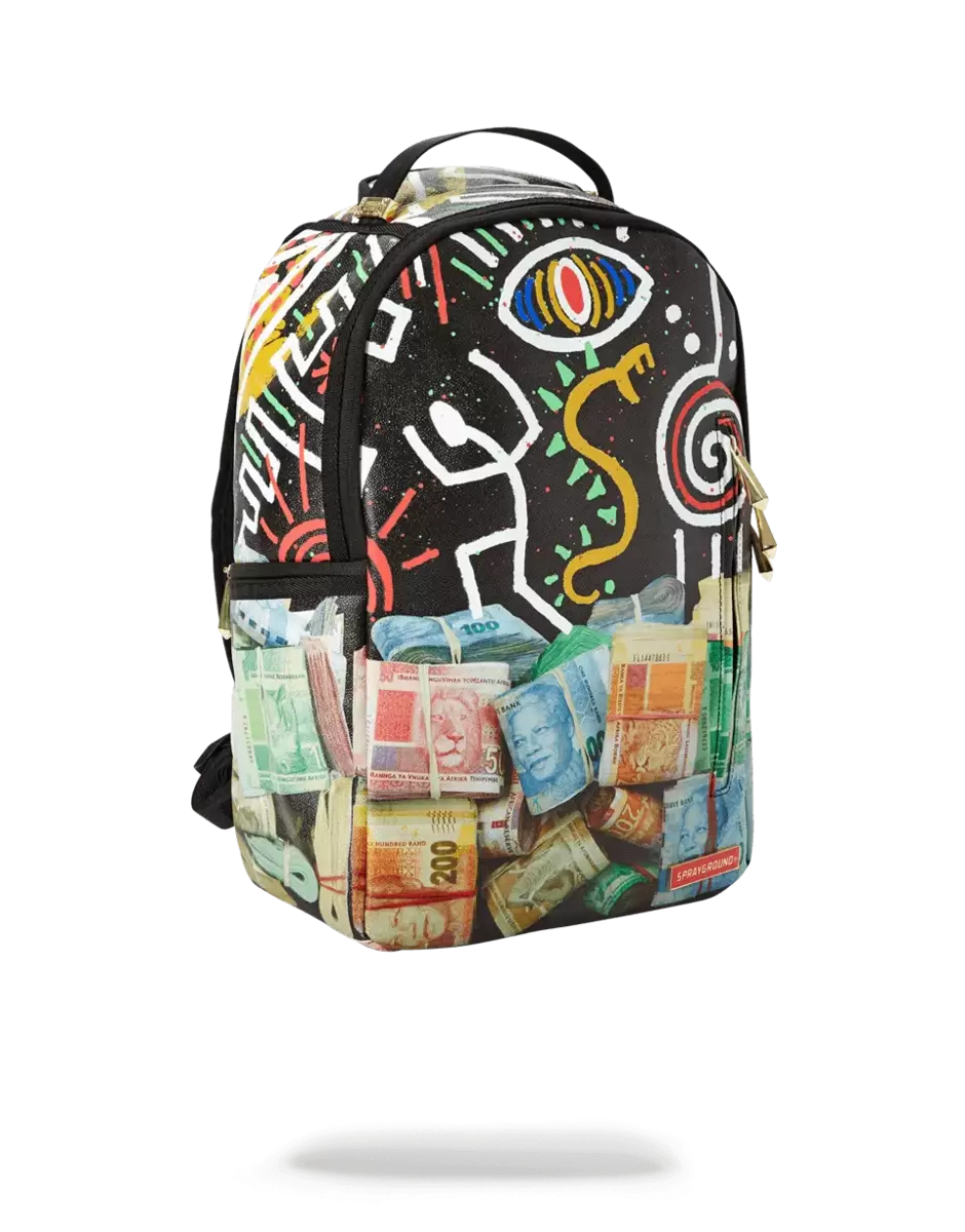A.I. INTELLIGENCE AFRICANA DI SPRAYGROUND PROGETTATO DA DAVIDBENDAVID & SANDFLOWER. UNA PARTE DEL RICAVATO DI QUESTA COLLEZIONE ANDRÀ ALL’AIUTO UMANITARIO GLOBALE E