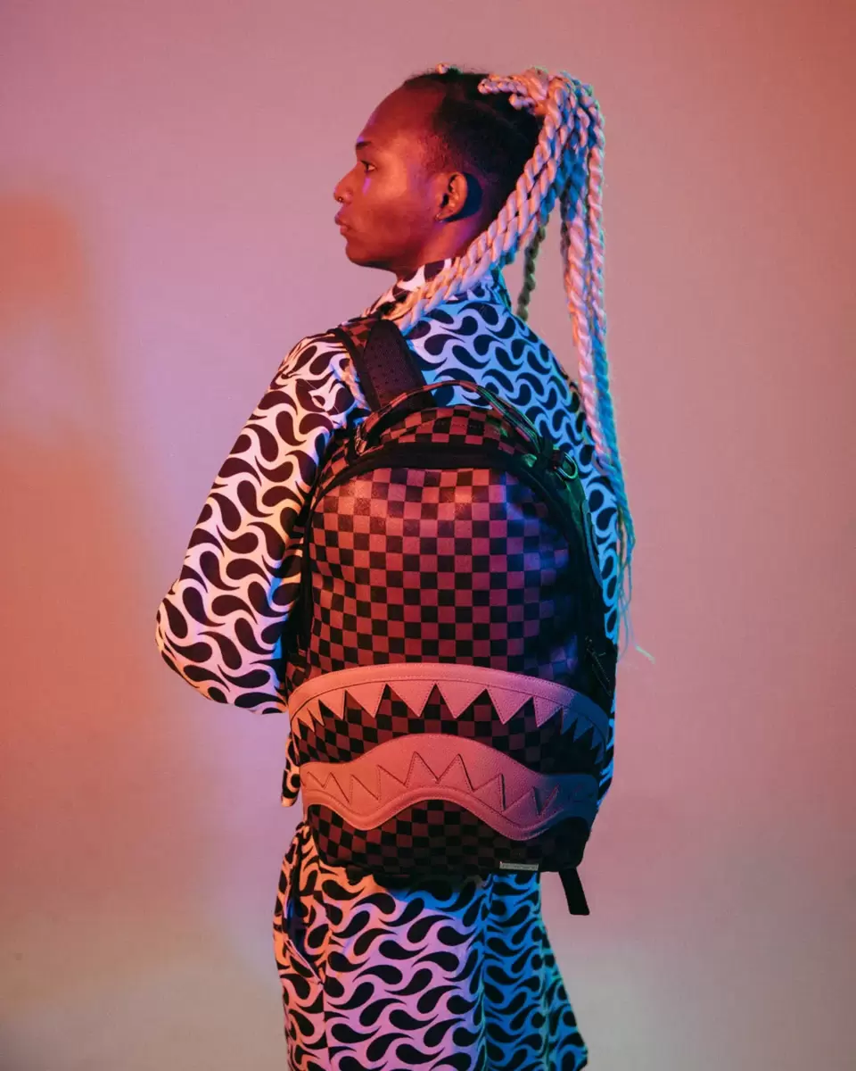 Dimensioni: 18″ x 6″ x 11,5″ Tasca frontale con cerniera Tasche laterali Tasca portaoggetti con cerniera Scomparto separato in velluto per occhiali da sole Imbottitura posteriore ergonomica in rete Cinghie regolabili per una vestibilità personalizzata Cerniere dorate con hardware in metallo Stemma “Sprayground Authentic” in metallo La manica posteriore scorrevole si collega al bagaglio a mano per avere le mani libere