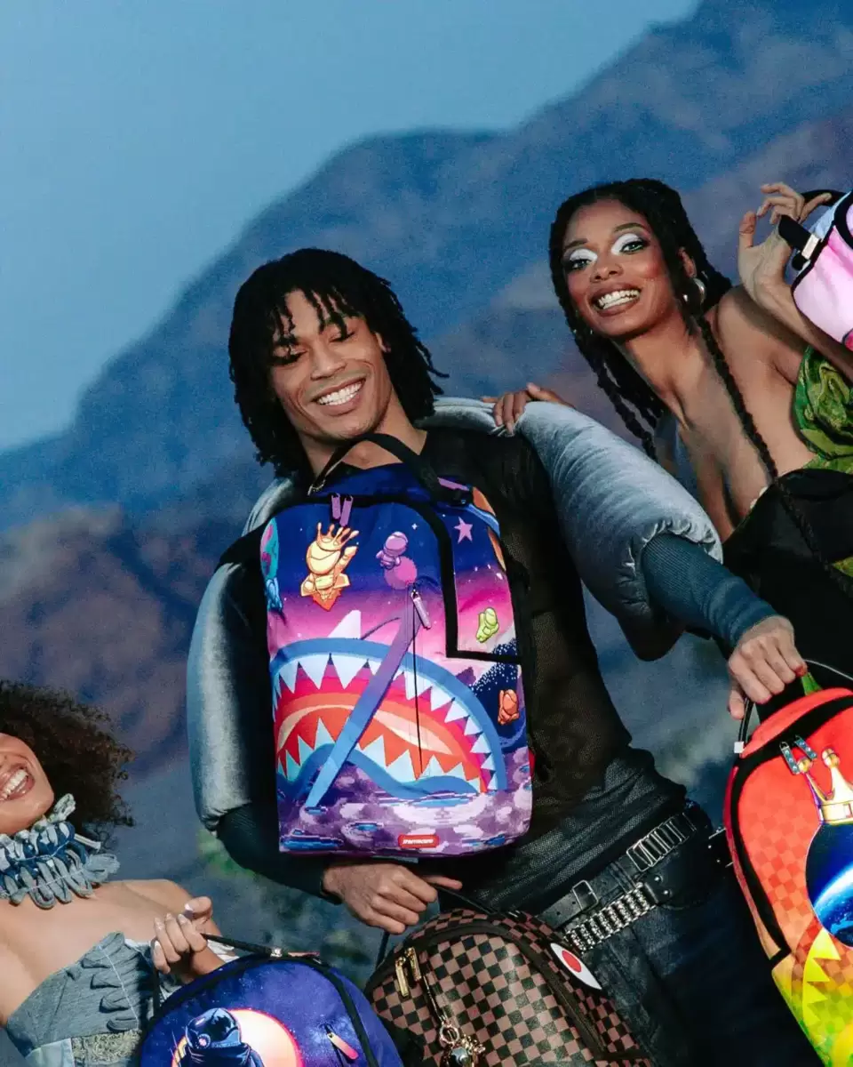 Dimensioni: 18″ x 6″ x 11,5″ Tasca frontale con cerniera Tasche laterali Tasca portaoggetti con cerniera Scomparto separato in velluto per occhiali da sole Imbottitura posteriore ergonomica in rete Cinghie regolabili per una vestibilità personalizzata Cerniere dorate con ferramenta in metallo Stemma in metallo “Sprayground Authentic” La tasca posteriore scorrevole si collega al bagaglio a mano per avere le mani libere