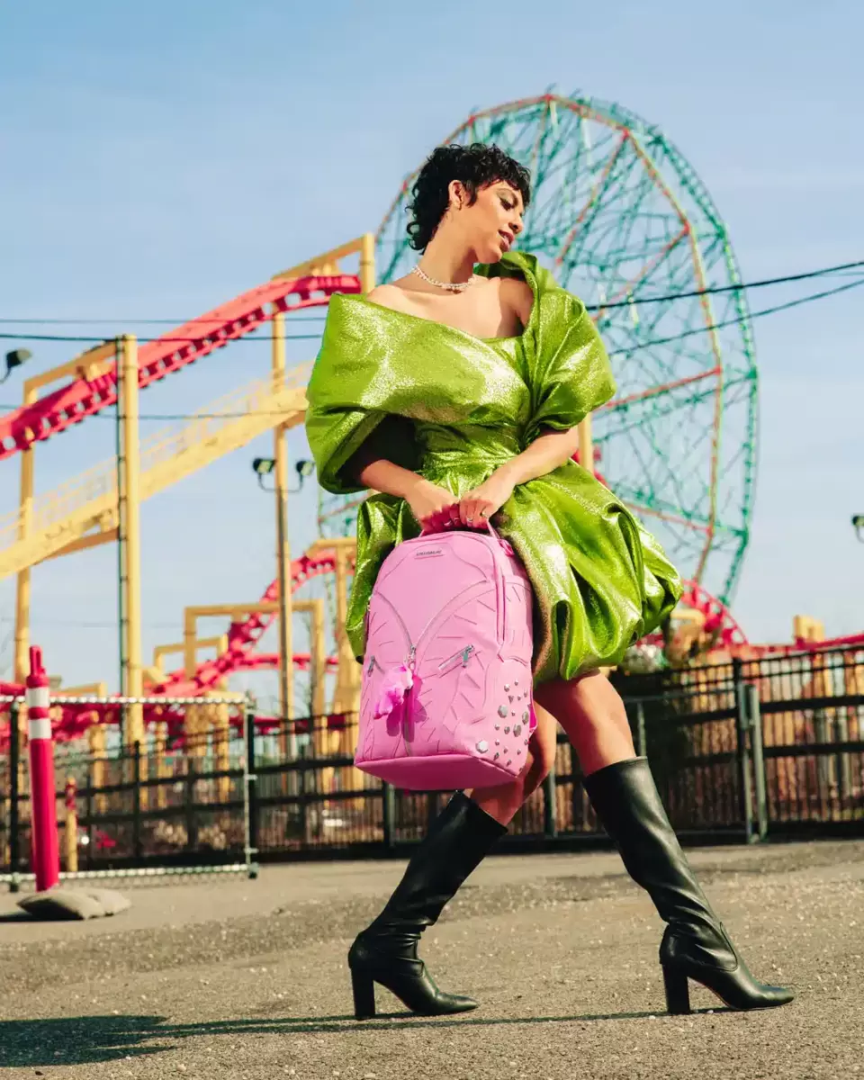 Dimensioni: 45,7 x 15,2 x 29,7 cm Tasca frontale con cerniera Tasche laterali Tasca portaoggetti con cerniera Scomparto separato in velluto per occhiali da sole Imbottitura posteriore ergonomica in rete Cinghie regolabili per una vestibilità personalizzata Cerniere dorate con ferramenta in metallo Stemma in metallo “Sprayground Authentic” La manica posteriore scorrevole si collega al bagaglio a mano per avere le mani libere