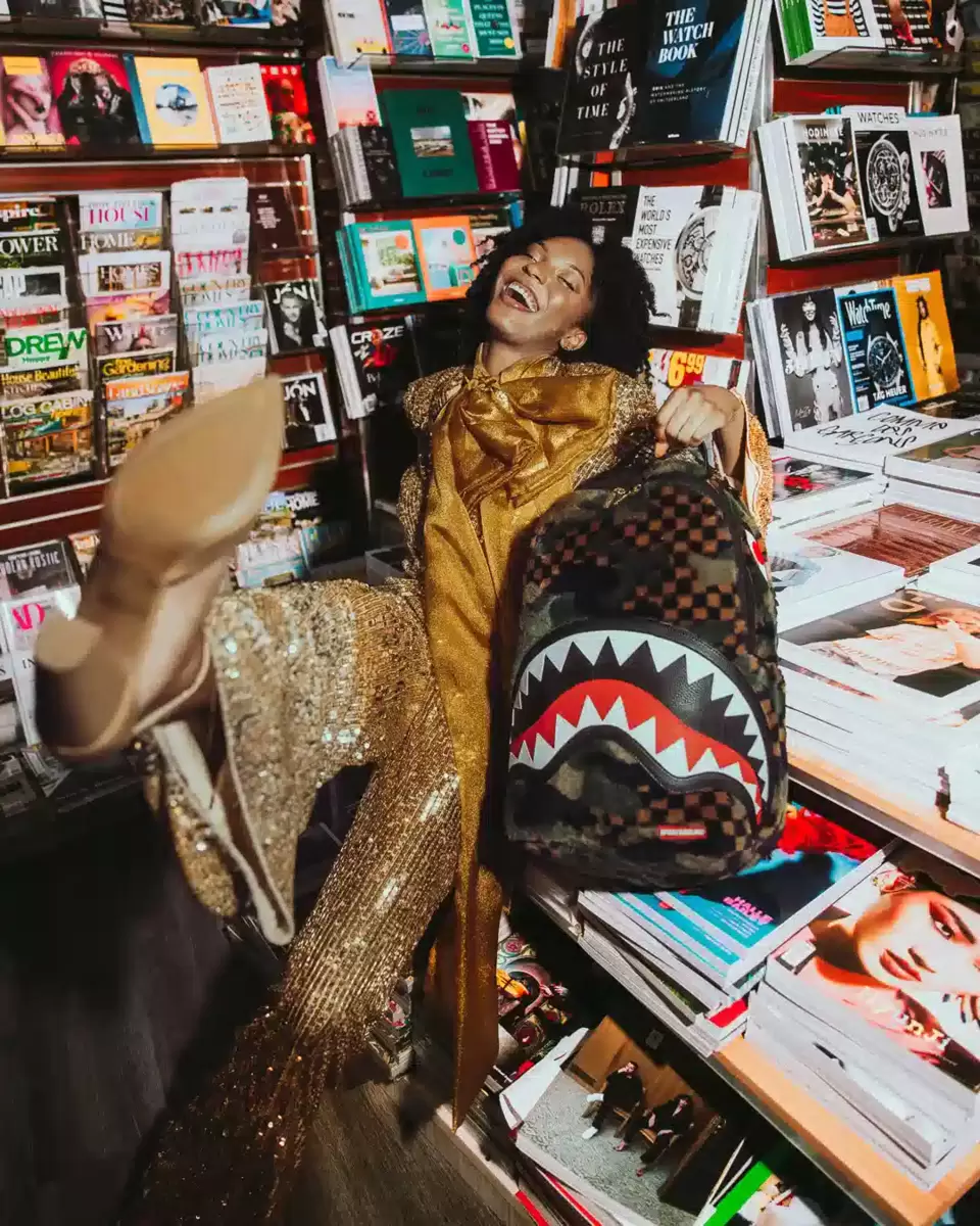 Dimensioni: 45,7 x 15,2 x 29,7 cm Tasca frontale con cerniera Tasche laterali Tasca portaoggetti con cerniera Scomparto separato in velluto per occhiali da sole Imbottitura posteriore ergonomica in rete Cinghie regolabili per una vestibilità personalizzata Cerniere dorate con ferramenta in metallo Stemma “Sprayground Authentic” in metallo La manica posteriore scorrevole si collega al bagaglio a mano per avere le mani libere