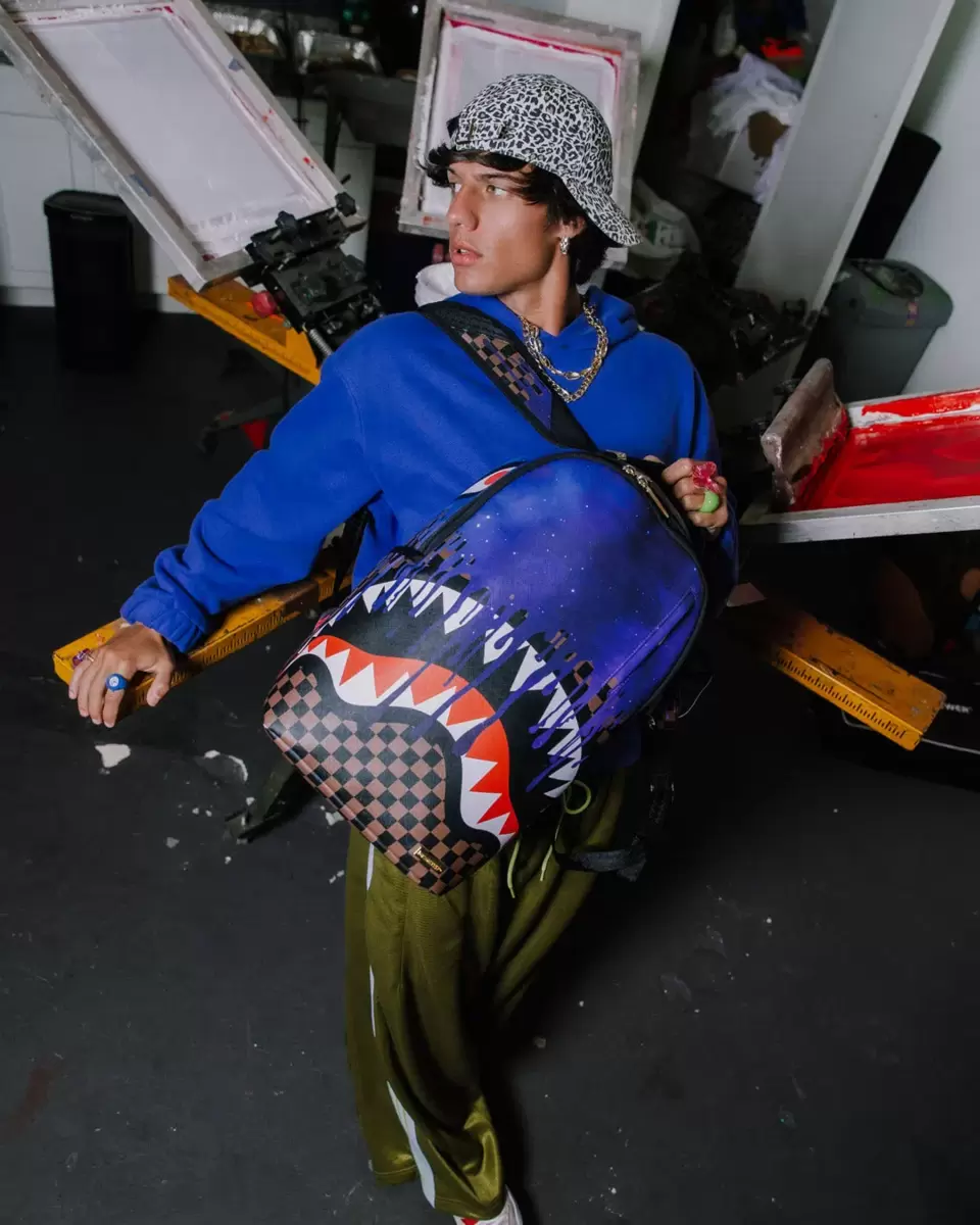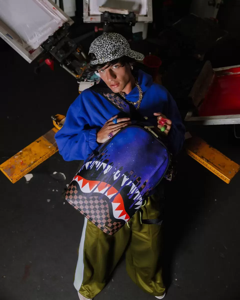 Dimensioni: 45,7 x 15,2 x 29,7 cm Tasca frontale con cerniera Tasche laterali Tasca portaoggetti con cerniera Scomparto separato in velluto per occhiali da sole Imbottitura posteriore ergonomica in rete Cinghie regolabili per una vestibilità personalizzata Cerniere dorate con ferramenta in metallo Stemma “Sprayground Authentic” in metallo La tasca posteriore scorrevole si collega al bagaglio a mano per avere le mani libere