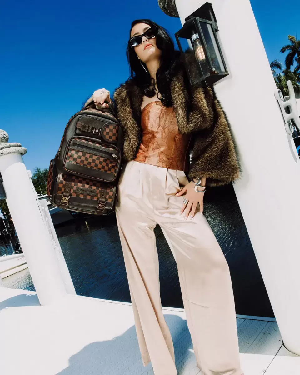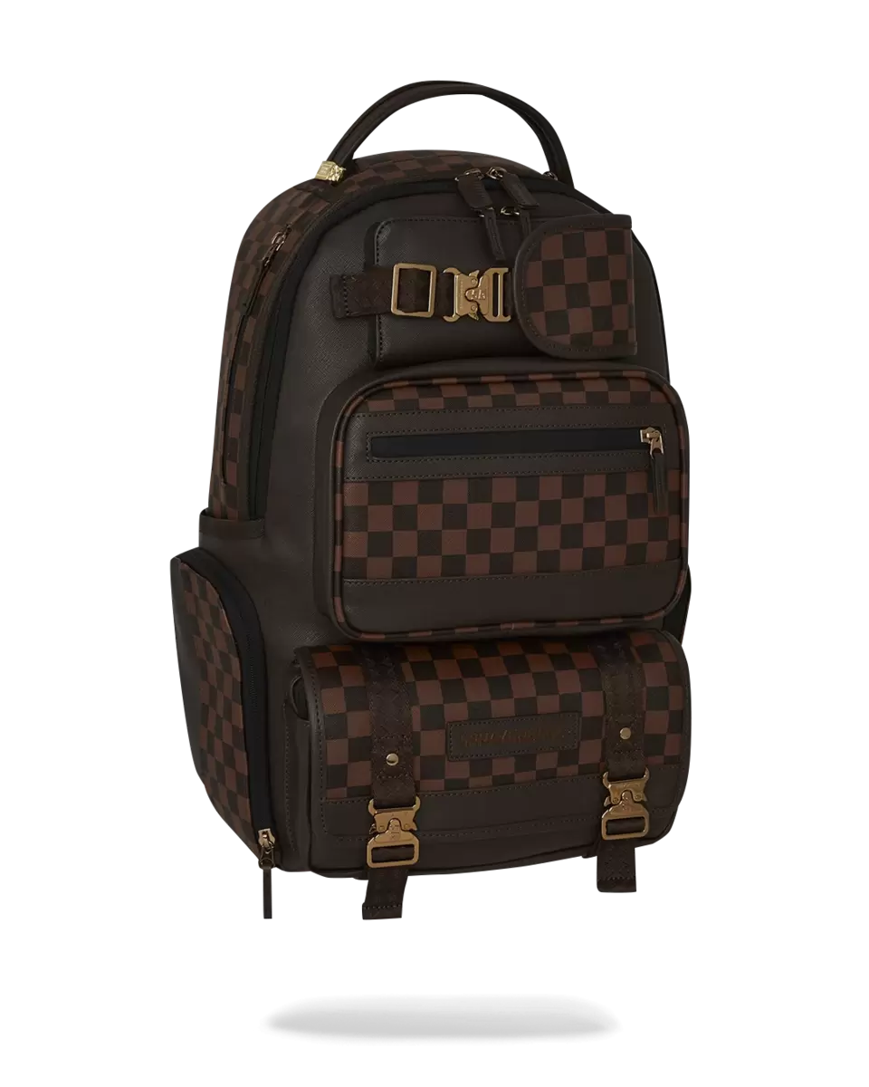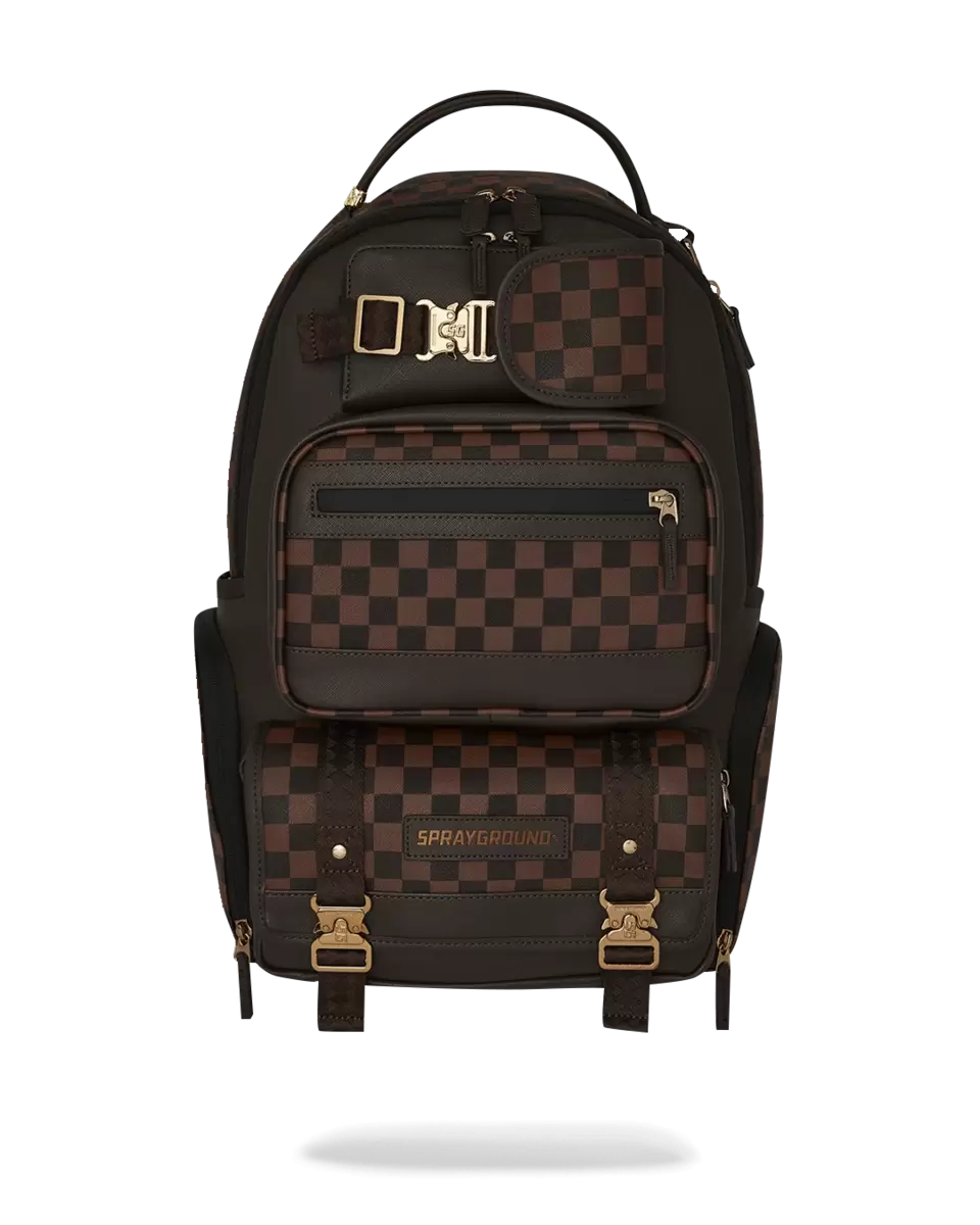 Dimensioni: 45,7 x 15,2 x 29,7 cm Tasca frontale con cerniera Tasche laterali Tasca nascosta con cerniera Scomparto separato in velluto per occhiali da sole Imbottitura posteriore ergonomica in rete Cinghie regolabili per una vestibilità personalizzata Cerniere dorate con hardware in metallo Stemma “Sprayground Authentic” in metallo La tasca posteriore scorrevole si collega al bagaglio a mano per avere le mani libere