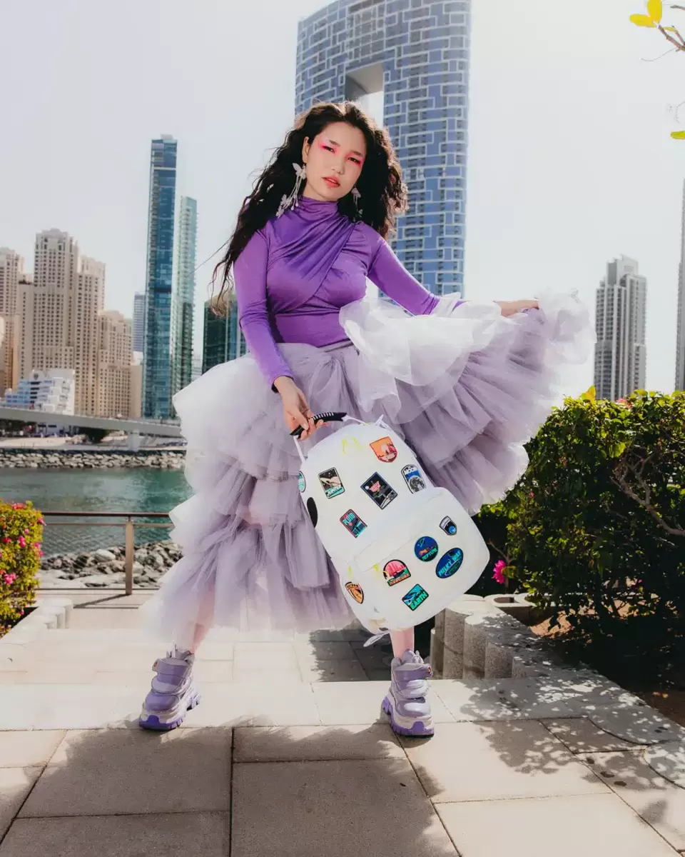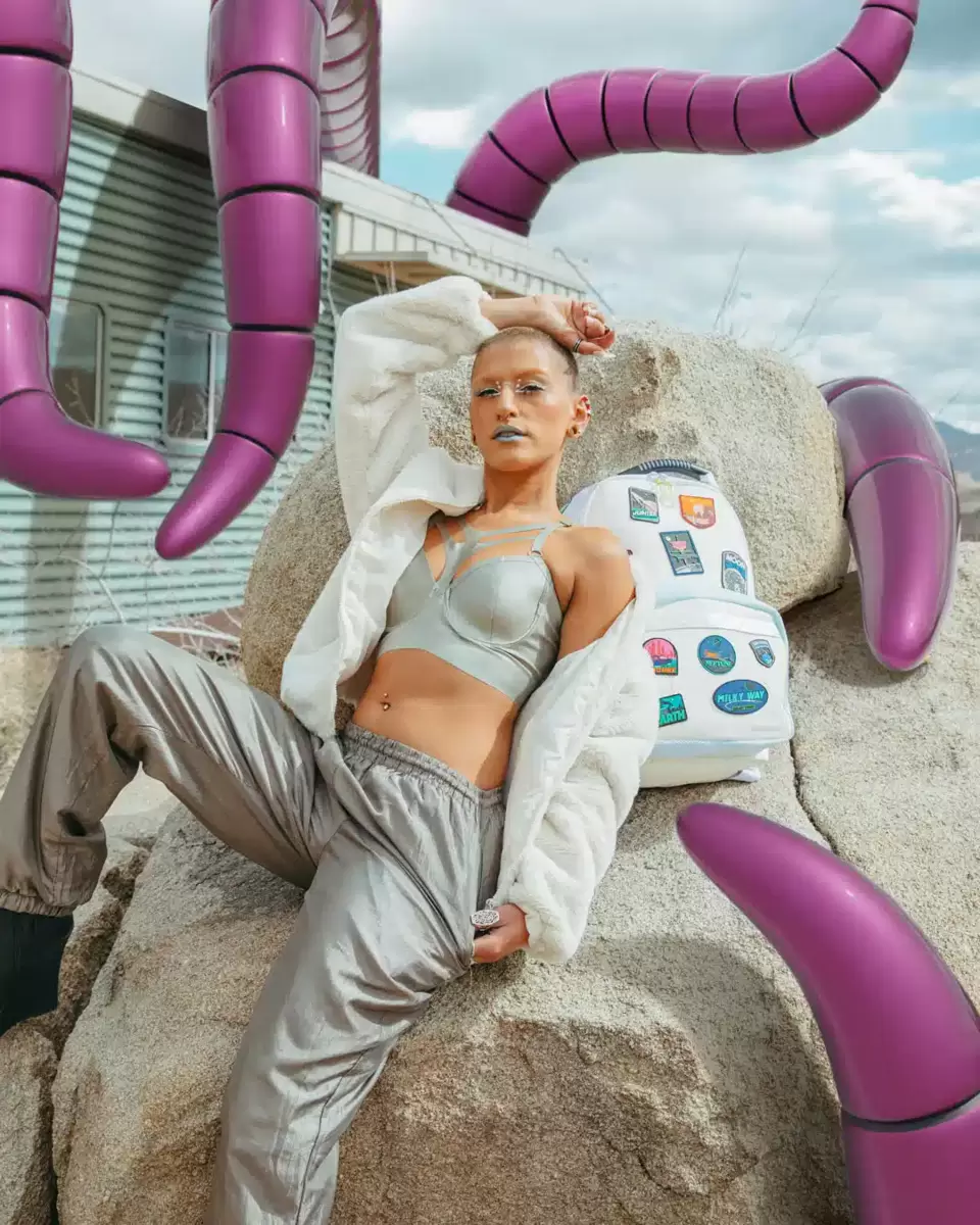 Tasca frontale cargo e tasche laterali con cerniera a forma di squalo