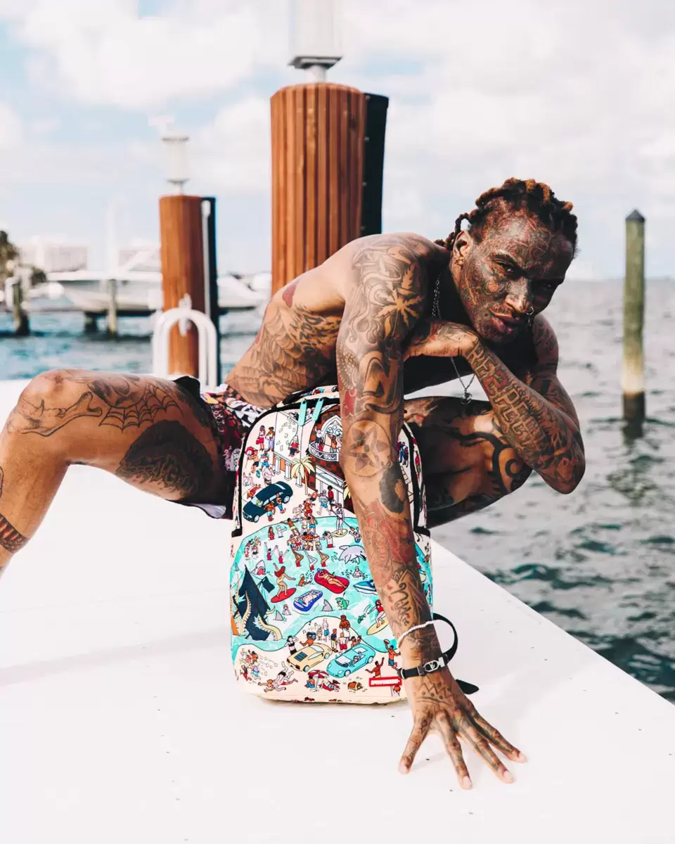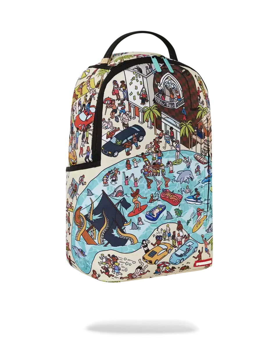 Dimensioni: 18″ x 6″ x 11,5″ Tasca frontale con cerniera Tasche laterali Tasca portaoggetti con cerniera Scomparto separato in velluto per occhiali da sole Imbottitura posteriore ergonomica in rete Cinghie regolabili per una vestibilità personalizzata Cerniere dorate con ferramenta in metallo Stemma in metallo “Sprayground Authentic” La tasca posteriore scorrevole si collega al bagaglio a mano per avere le mani libere