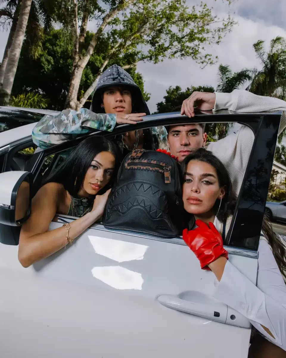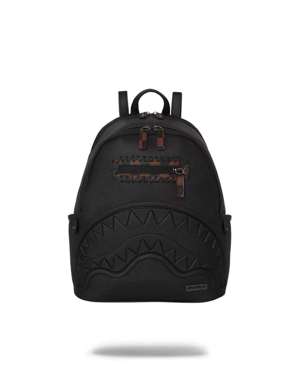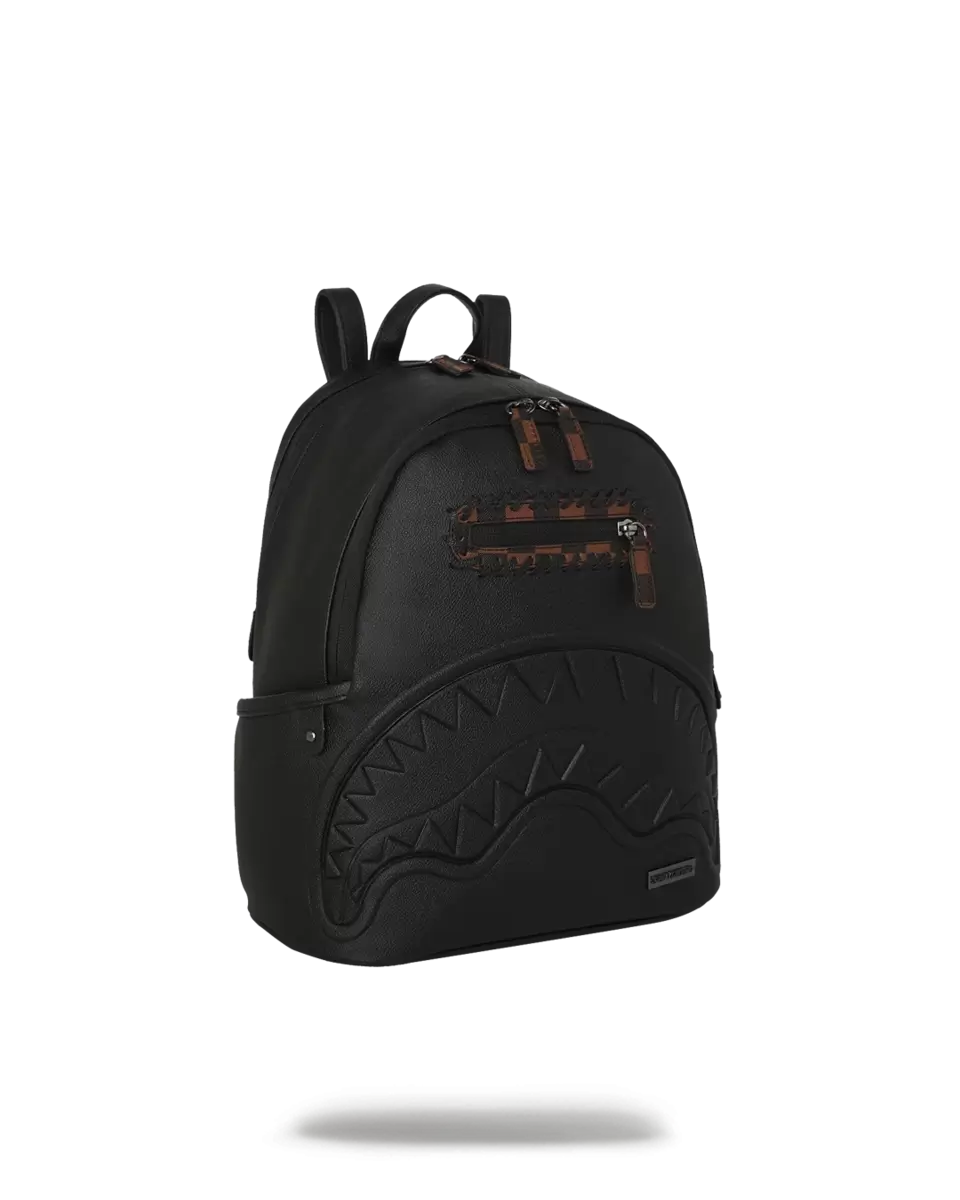 Borsa in PVC con dettagli in rilievo, come la bocca di squalo e i tiretti delle cerniere. Dettagli in similpelle cuciti attorno alla tasca anteriore con cerniera.