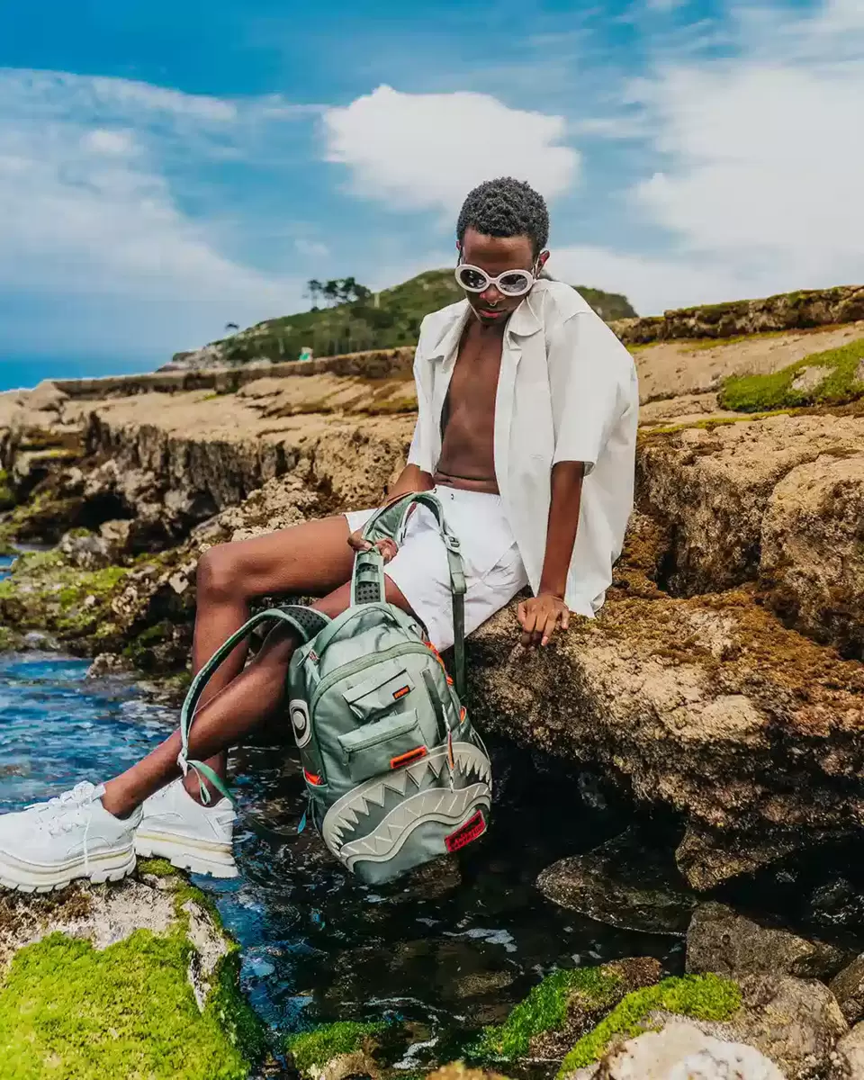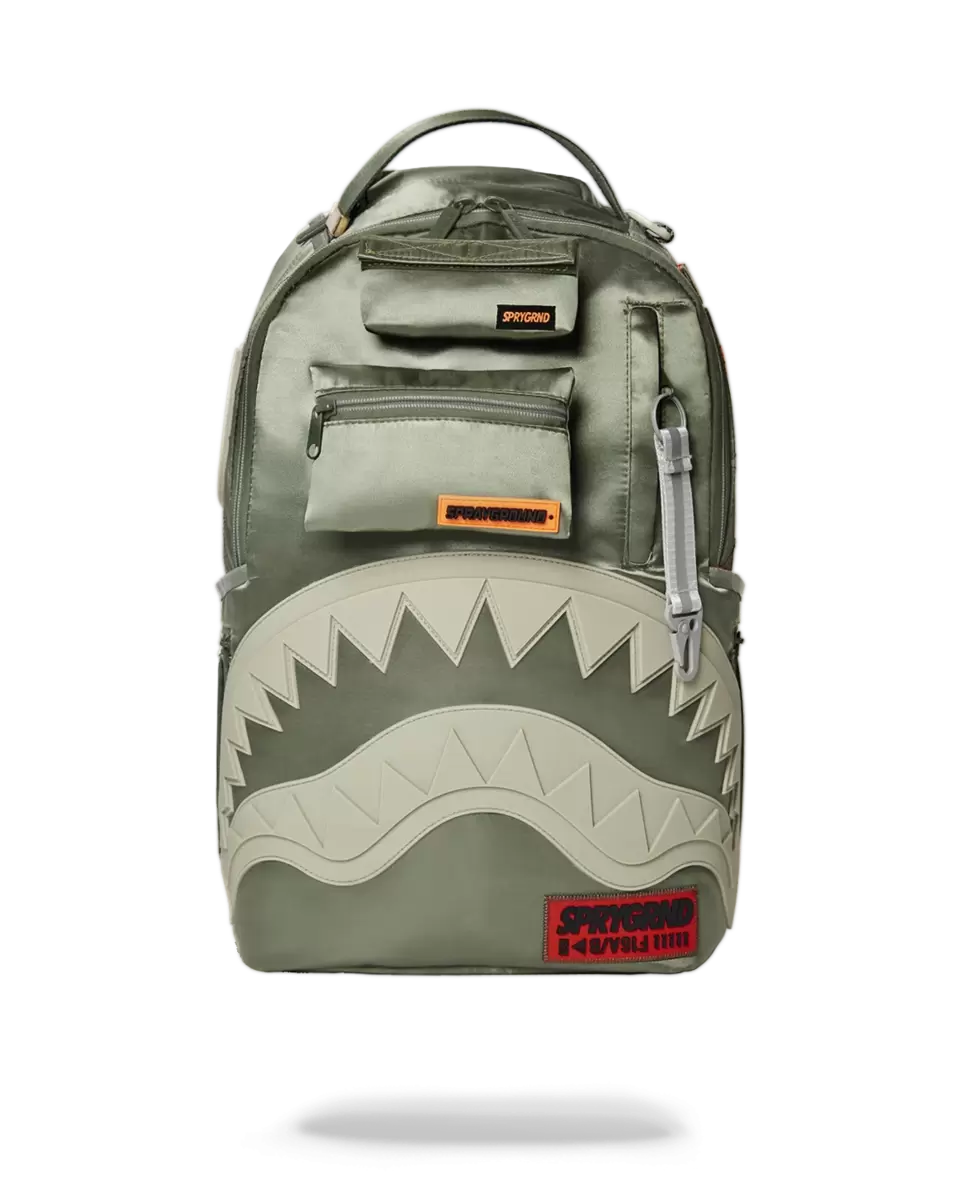 Dimensioni: 45,7 x 15,2 x 29,7 cm Tasca frontale con cerniera Tasche laterali Tasca portaoggetti con cerniera Scomparto separato in velluto per occhiali da sole Imbottitura posteriore ergonomica in rete Cinghie regolabili per una vestibilità personalizzata Cerniere rosse con ferramenta in metallo Stemma in metallo “Sprayground Authentic” La tasca posteriore scorrevole si collega al bagaglio a mano per avere le mani libere