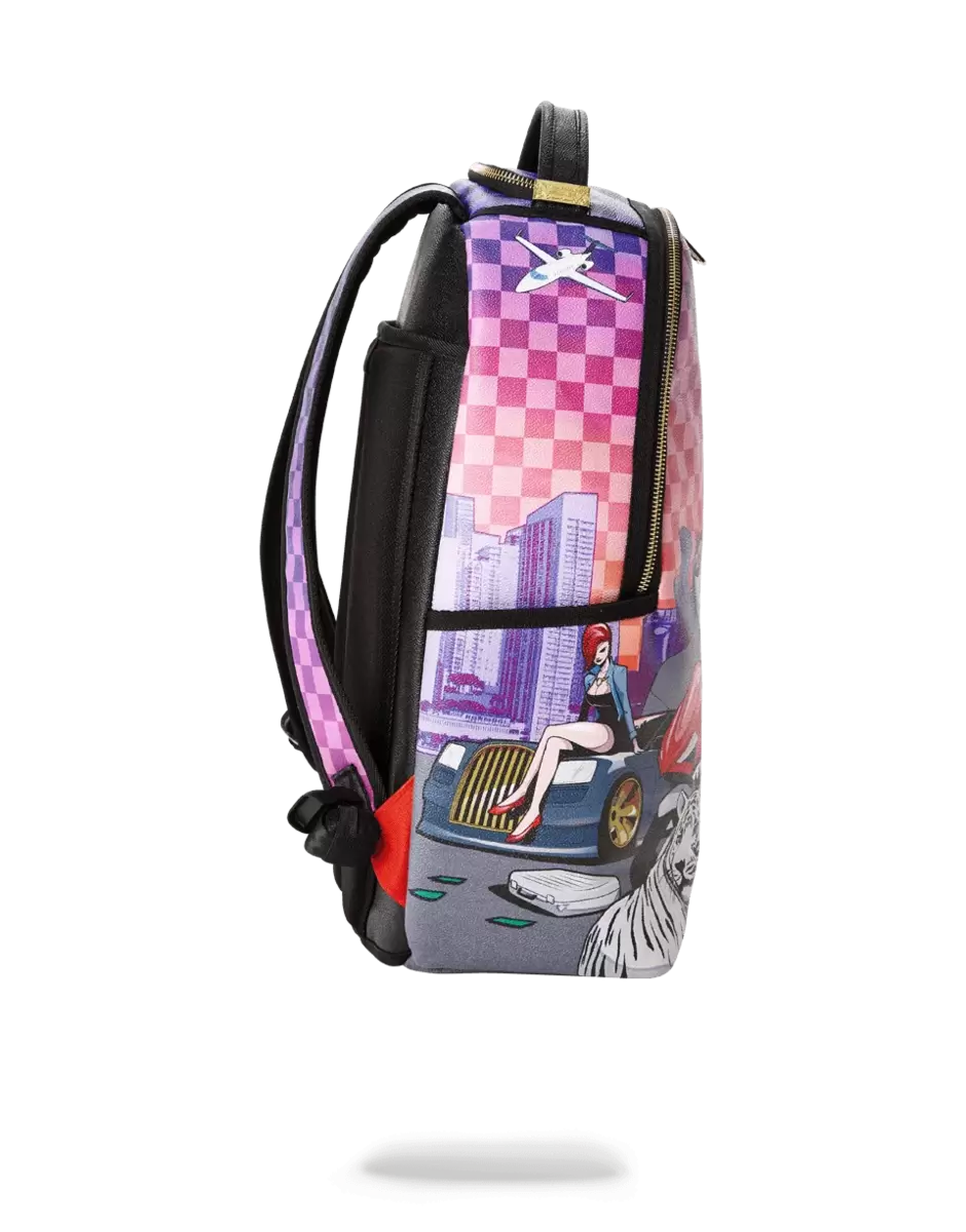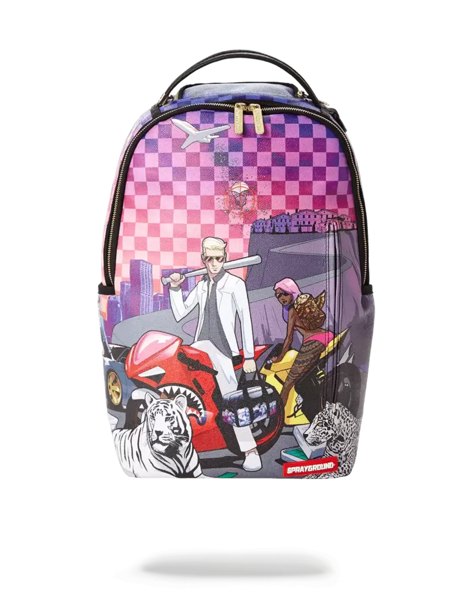 Dimensioni: 18″ x 6″ x 11,5″ Tasca frontale con cerniera Tasche laterali Tasca portaoggetti con cerniera Imbottitura posteriore ergonomica in rete Cinghie regolabili per una vestibilità personalizzata Cerniere in nylon con hardware in metallo Stemma in metallo “Sprayground Authentic” La tasca posteriore scorrevole si collega al bagaglio a mano per avere le mani libere