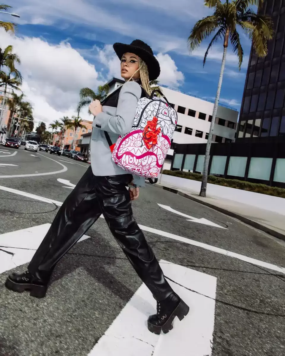 Dimensioni: 18″ x 6″ x 11,5″ Tasca frontale con cerniera Tasche laterali Tasca portaoggetti con cerniera Scomparto separato in velluto per occhiali da sole Imbottitura posteriore ergonomica in rete Cinghie regolabili per una vestibilità personalizzata Cerniere dorate con ferramenta in metallo Stemma in metallo “Sprayground Authentic” La tasca posteriore scorrevole si collega al bagaglio a mano per avere le mani libere