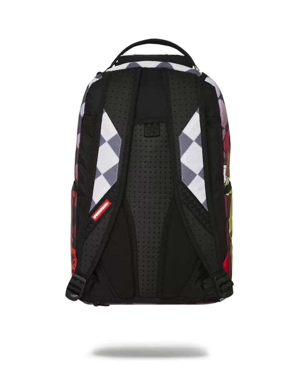 Dimensioni: 18″ x 6″ x 11,5″ Tasca frontale con cerniera Tasche laterali Tasca portaoggetti con cerniera Scomparto separato in velluto per occhiali da sole Imbottitura posteriore ergonomica in rete Cinghie regolabili per una vestibilità personalizzata Cerniere dorate con ferramenta in metallo Stemma in metallo “Sprayground Authentic” La tasca posteriore scorrevole si collega al bagaglio a mano per avere le mani libere