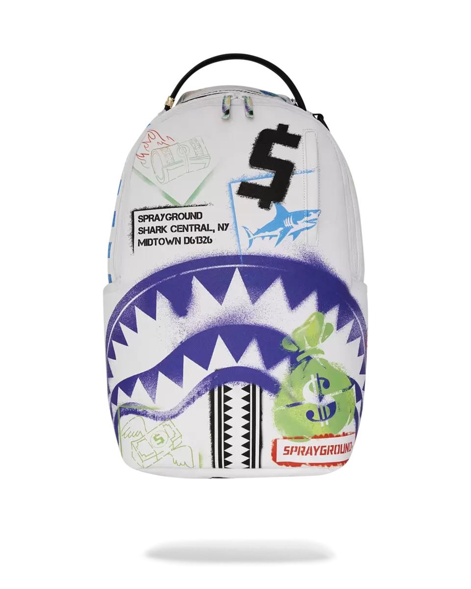 Dimensioni: 45,7 x 15,2 x 29,7 cm Tasca frontale con cerniera Tasche laterali Tasca portaoggetti con cerniera Scomparto separato in velluto per occhiali da sole Imbottitura posteriore ergonomica in rete Cinghie regolabili per una vestibilità personalizzata Cerniere dorate con ferramenta in metallo Stemma “Sprayground Authentic” in metallo La tasca posteriore scorrevole si collega al bagaglio a mano per avere le mani libere