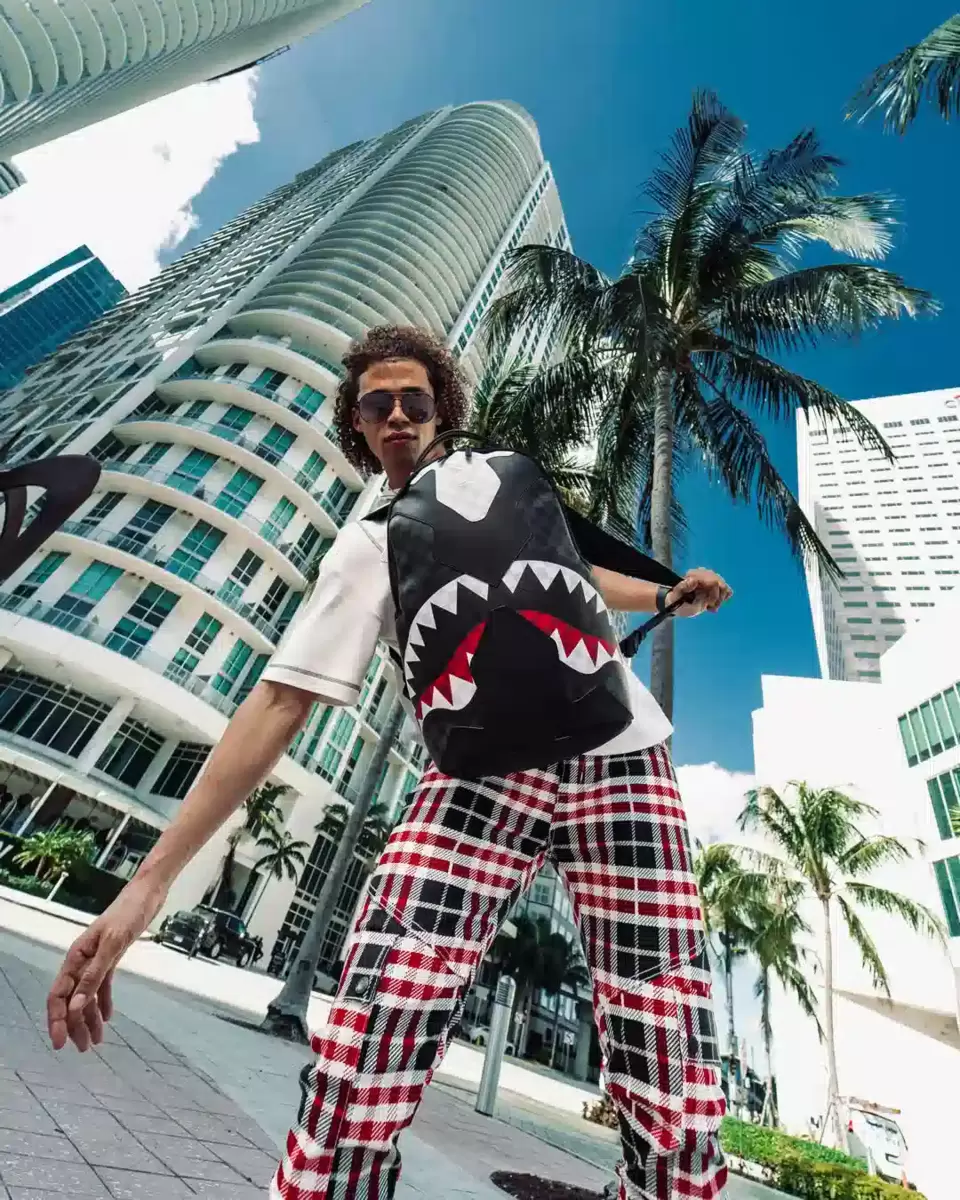 Dimensioni: 18″ x 6″ x 11,5″ Tasca frontale con cerniera Tasche laterali Tasca portaoggetti con cerniera Scomparto separato in velluto per occhiali da sole Imbottitura posteriore ergonomica in rete Cinghie regolabili per una vestibilità personalizzata Cerniere dorate con ferramenta in metallo Stemma in metallo “Sprayground Authentic” La tasca posteriore scorrevole si collega al bagaglio a mano per avere le mani libere