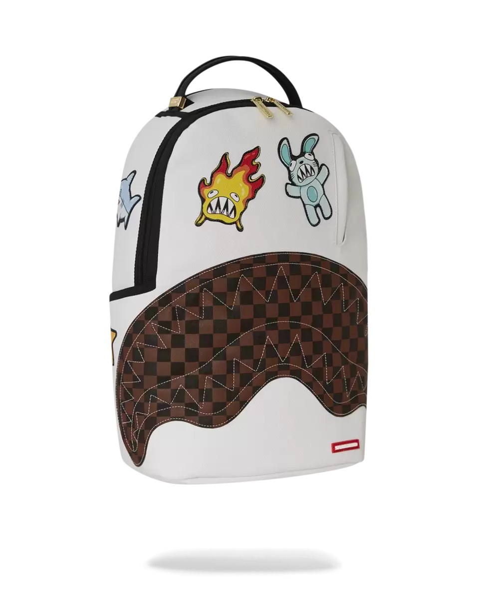 Dimensioni: 18″ x 6″ x 11,5″ Tasca frontale con cerniera Tasche laterali Tasca portaoggetti con cerniera Scomparto separato in velluto per occhiali da sole Imbottitura posteriore ergonomica in rete Cinghie regolabili per una vestibilità personalizzata Cerniere dorate con ferramenta in metallo Stemma in metallo “Sprayground Authentic” La tasca posteriore scorrevole si collega al bagaglio a mano per avere le mani libere