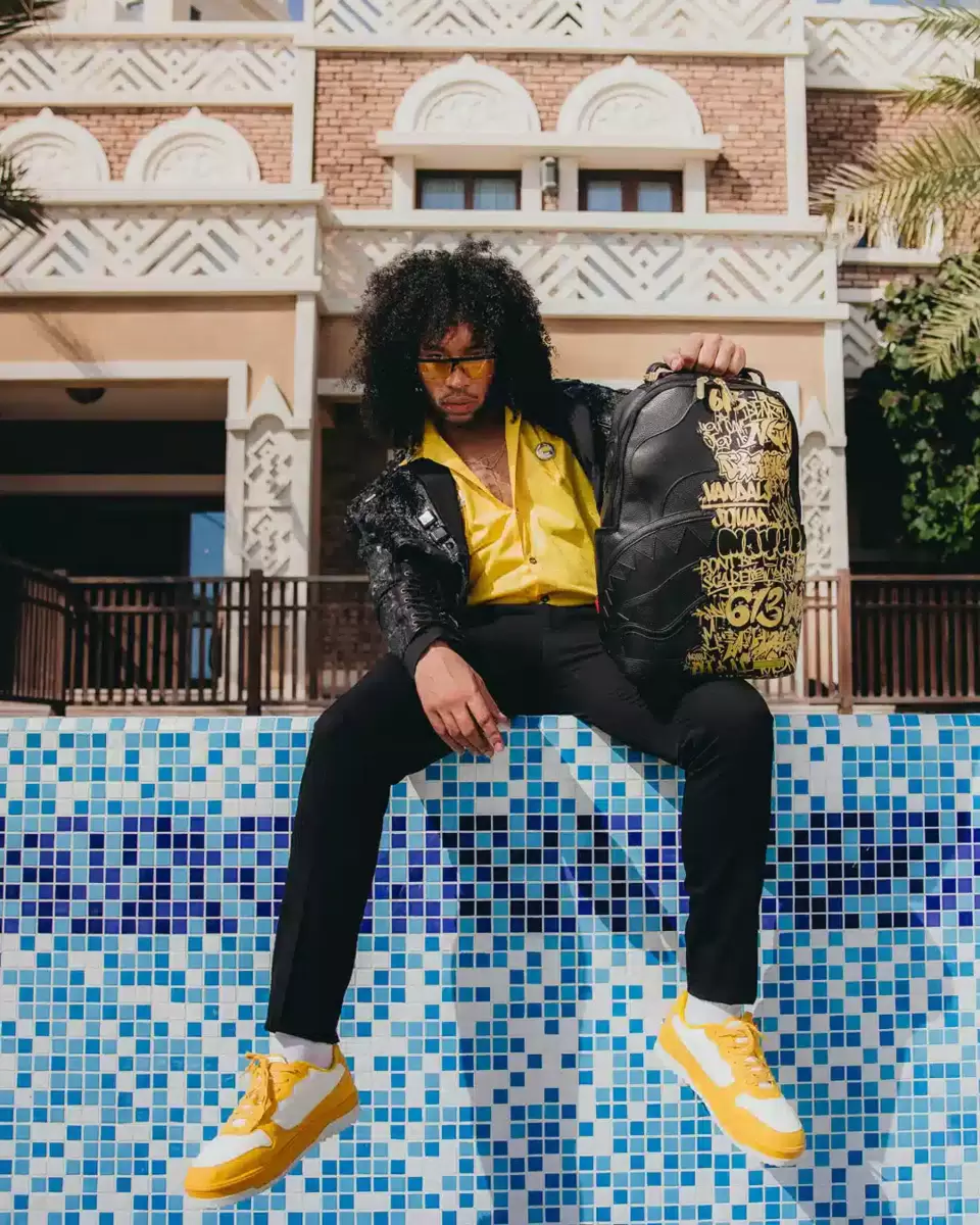 Dimensioni: 45,7 x 15,2 x 29,7 cm Tasca frontale con cerniera Tasche laterali Tasca portaoggetti con cerniera Scomparto separato in velluto per occhiali da sole Imbottitura posteriore ergonomica in rete Cinghie regolabili per una vestibilità personalizzata Cerniere dorate con ferramenta in metallo Stemma “Sprayground Authentic” in metallo La tasca posteriore scorrevole si collega al bagaglio a mano per avere le mani libere