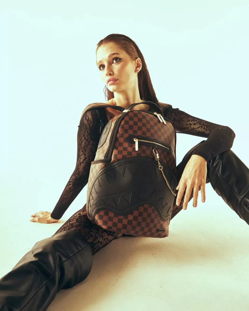Dimensioni: 45,7 x 15,2 x 29,7 cm Tasca frontale con cerniera Tasche laterali Tasca portaoggetti con cerniera Scomparto separato in velluto per occhiali da sole Imbottitura posteriore ergonomica in rete Cinghie regolabili per una vestibilità personalizzata Cerniere dorate con ferramenta in metallo Stemma in metallo “Sprayground Authentic” La tasca posteriore scorrevole si collega al bagaglio a mano per avere le mani libere