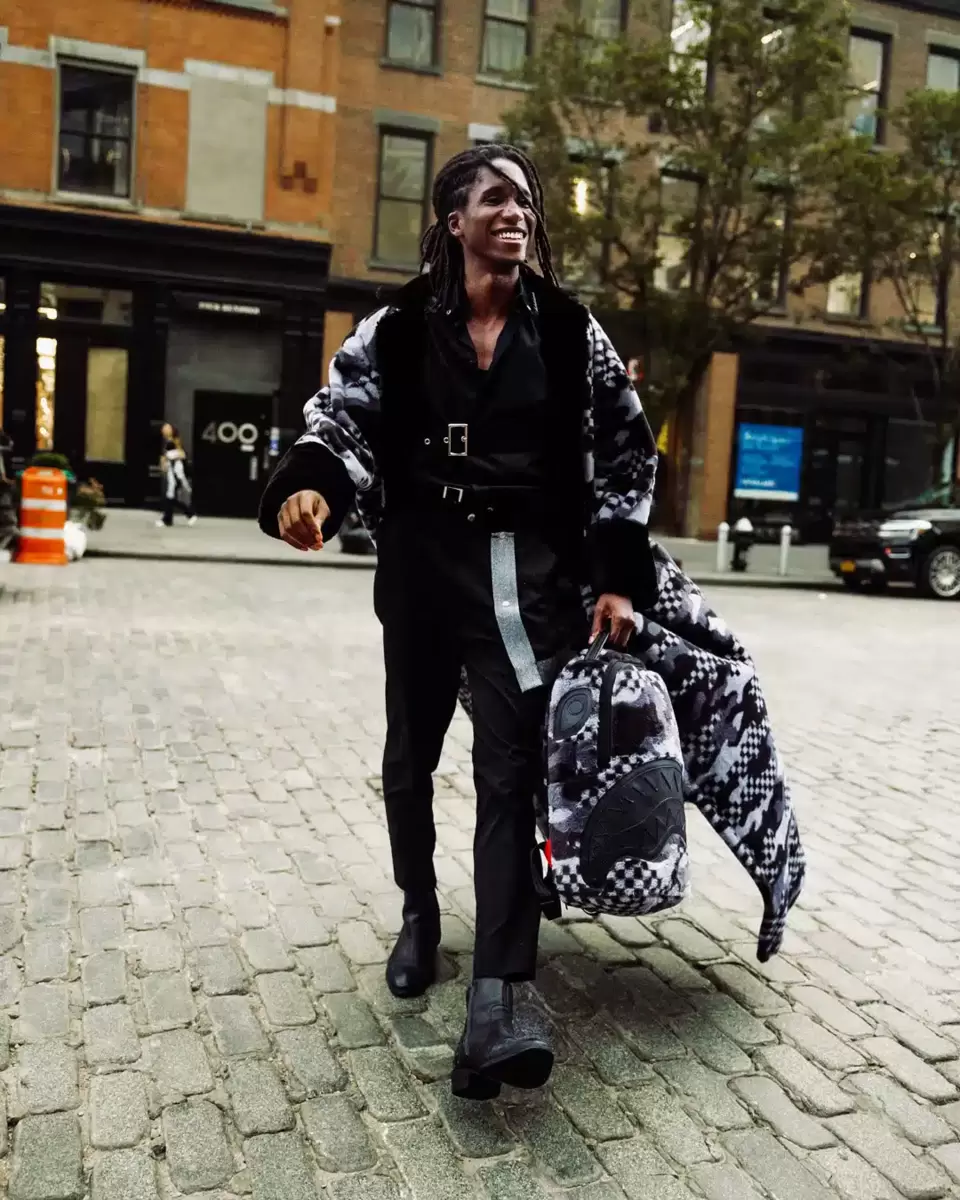 Dimensioni: 45,7 x 15,2 x 29,7 cm Tasca frontale con cerniera Tasche laterali Tasca portaoggetti con cerniera Scomparto separato in velluto per occhiali da sole Imbottitura posteriore ergonomica in rete Cinghie regolabili per una vestibilità personalizzata Cerniere dorate con ferramenta in metallo Stemma “Sprayground Authentic” in metallo La manica posteriore scorrevole si collega al bagaglio a mano per avere le mani libere