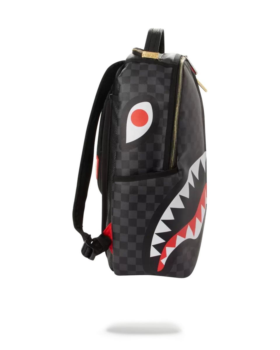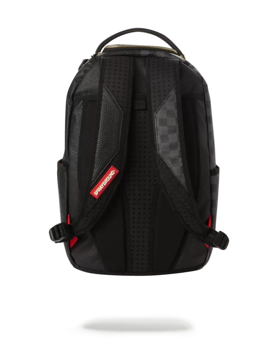 Dimensioni: 18″ x 6″ x 11,5″ Tasca frontale con cerniera Tasche laterali Tasca portaoggetti con cerniera Scomparto separato in velluto per occhiali da sole Imbottitura posteriore ergonomica in rete Cinghie regolabili per una vestibilità personalizzata Cerniere dorate e argentate con ferramenta in metallo Stemma in metallo “Sprayground Authentic” La tasca posteriore scorrevole si collega al bagaglio a mano per avere le mani libere