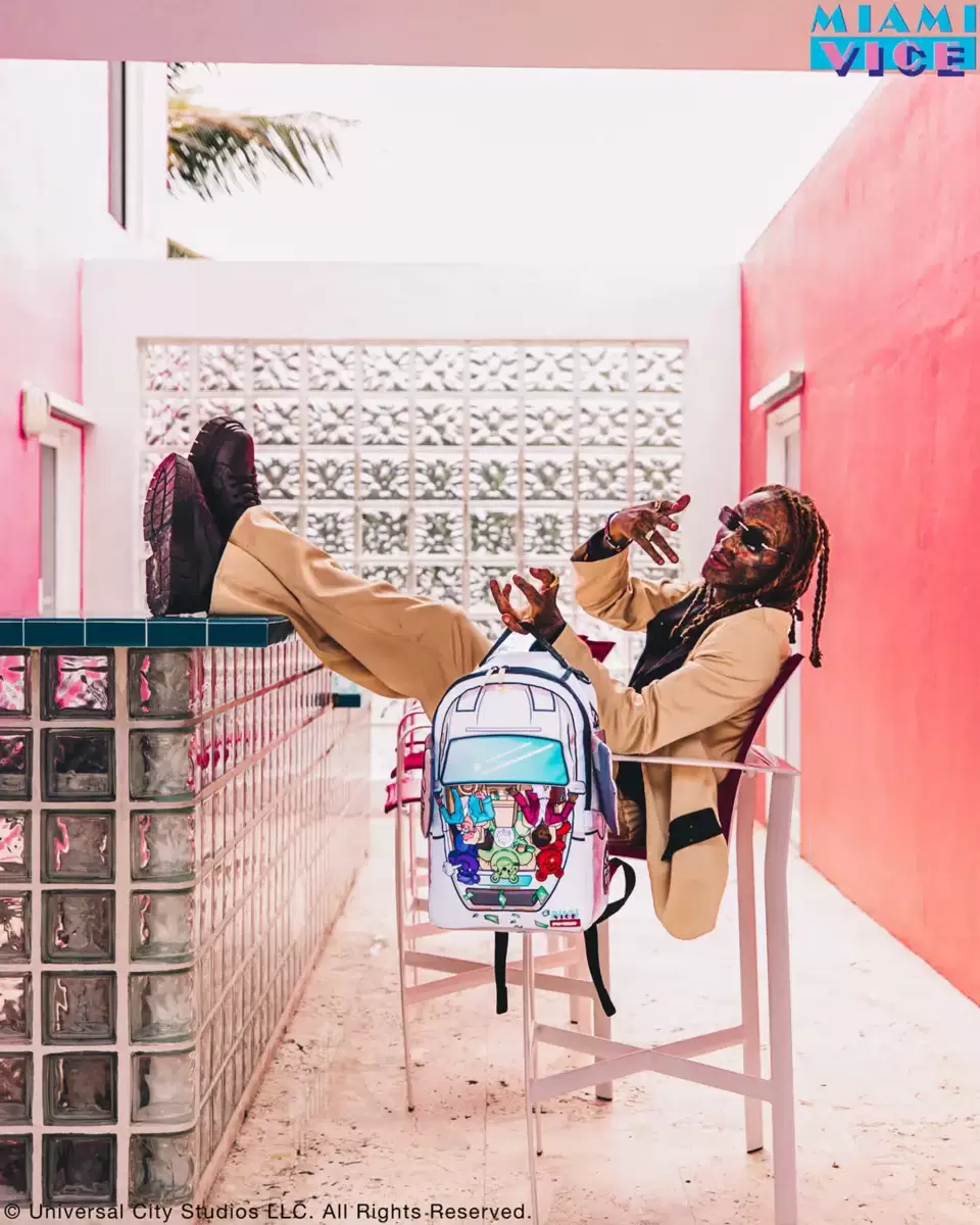 Tasca frontale con cerniera Tasche laterali Tasca portaoggetti con cerniera Scomparto separato in velluto per occhiali da sole Imbottitura posteriore ergonomica in rete Cinghie regolabili per una vestibilità personalizzata Cerniere dorate con ferramenta in metallo Stemma in metallo “Sprayground Authentic” La tasca posteriore scorrevole si collega al bagaglio a mano per avere le mani libere