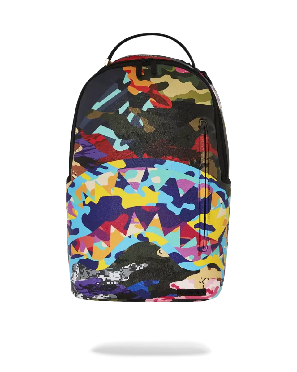 Dimensioni: 18″ x 6″ x 11,5″ Tasca frontale con cerniera Tasche laterali Tasca portaoggetti con cerniera Scomparto separato in velluto per occhiali da sole Imbottitura posteriore ergonomica in rete Cinghie regolabili per una vestibilità personalizzata Cerniere dorate con ferramenta in metallo Stemma in metallo “Sprayground Authentic” La tasca posteriore scorrevole si collega al bagaglio a mano per avere le mani libere