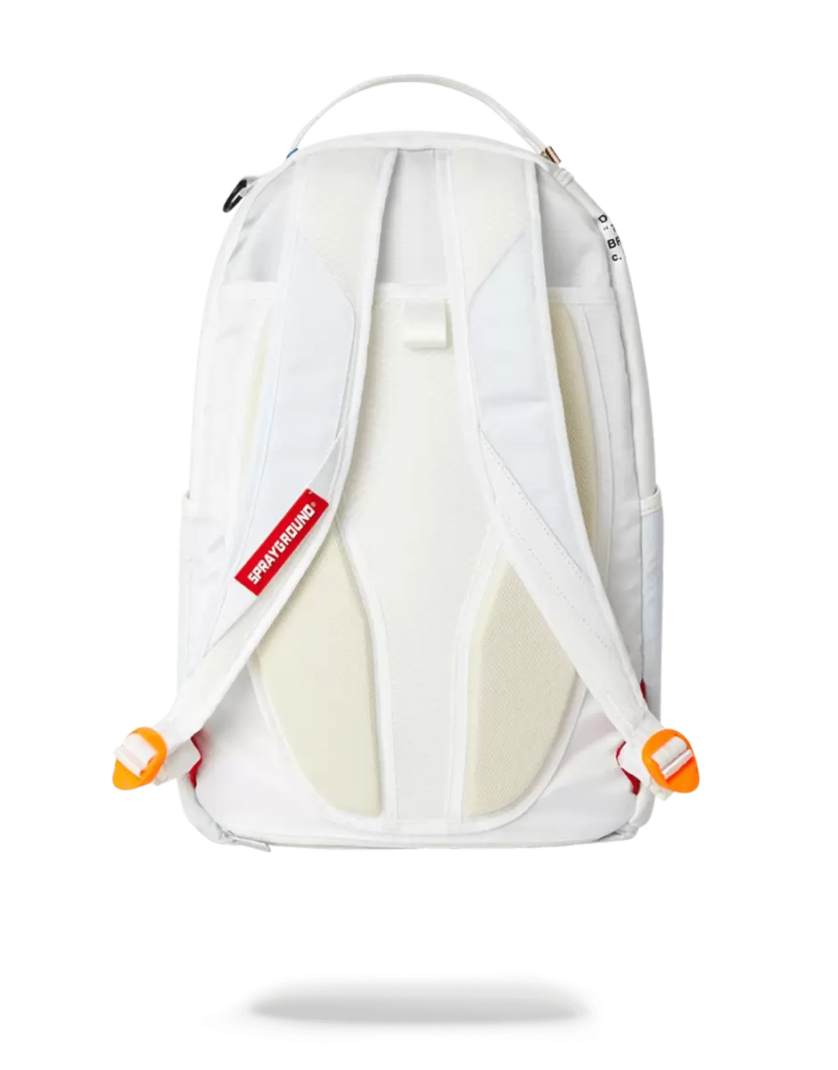 Dimensioni: 18″ x 6″ x 11,5″ Tasca frontale con cerniera Tasche laterali Tasca portaoggetti con cerniera Imbottitura posteriore ergonomica in rete Cinghie regolabili per una vestibilità personalizzata Cerniere in nylon con hardware in metallo Stemma in metallo “Sprayground Authentic” La tasca posteriore scorrevole si collega al bagaglio a mano per avere le mani libere
