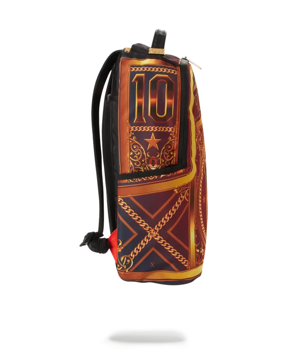 Dimensioni: 18″ x 6″ x 11,5″ Tasca frontale con cerniera Tasche laterali Tasca portaoggetti con cerniera Scomparto separato in velluto per occhiali da sole Imbottitura posteriore ergonomica in rete Cinghie regolabili per una vestibilità personalizzata Cerniere dorate con ferramenta in metallo Stemma in metallo “Sprayground Authentic” La tasca posteriore scorrevole si collega al bagaglio a mano per avere le mani libere