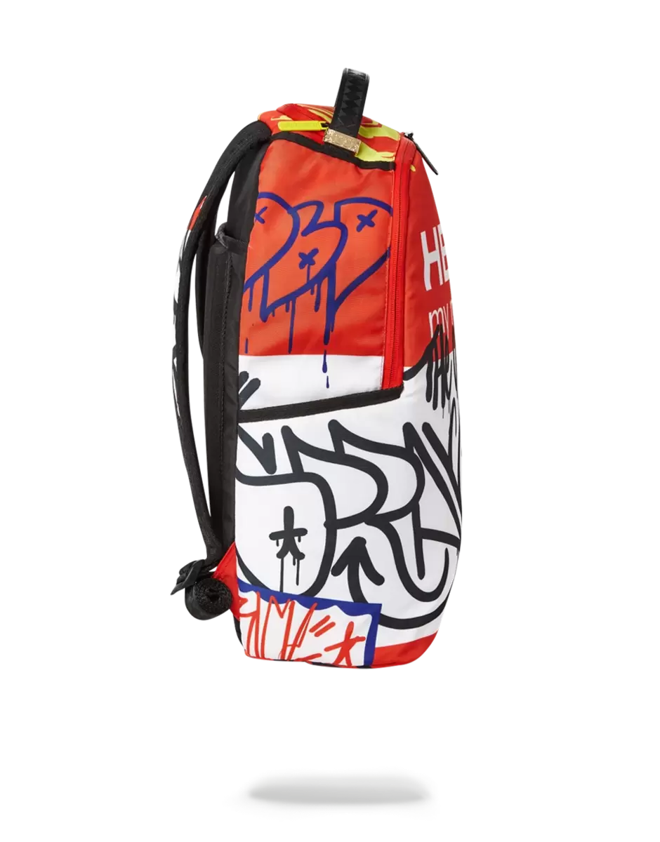 Dimensioni: 18″ x 6″ x 11,5″ Tasca frontale con cerniera Tasche laterali Tasca portaoggetti con cerniera Scomparto separato in velluto per occhiali da sole Imbottitura posteriore ergonomica in rete Cinghie regolabili per una vestibilità personalizzata Cerniere multicolori con ferramenta in metallo Stemma in metallo “Sprayground Authentic” La tasca posteriore scorrevole si collega al bagaglio a mano per avere le mani libere