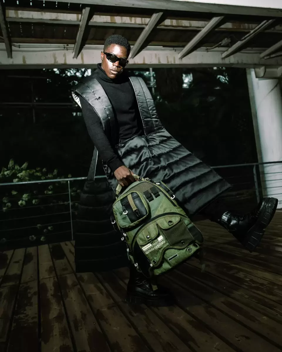 Arricchito con tasche cargo a forma di squalo, occhiello e clip.