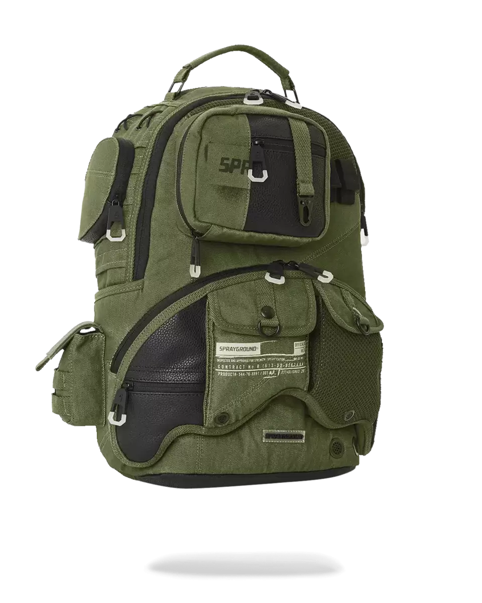 Dimensioni: 45,7 x 15,2 x 29,7 cm Tasca frontale con cerniera Tasche laterali Tasca portaoggetti con cerniera Scomparto separato in velluto per occhiali da sole Cinghie regolabili per una vestibilità personalizzata Cerniere dorate con ferramenta in metallo Stemma “Sprayground Authentic” in metallo