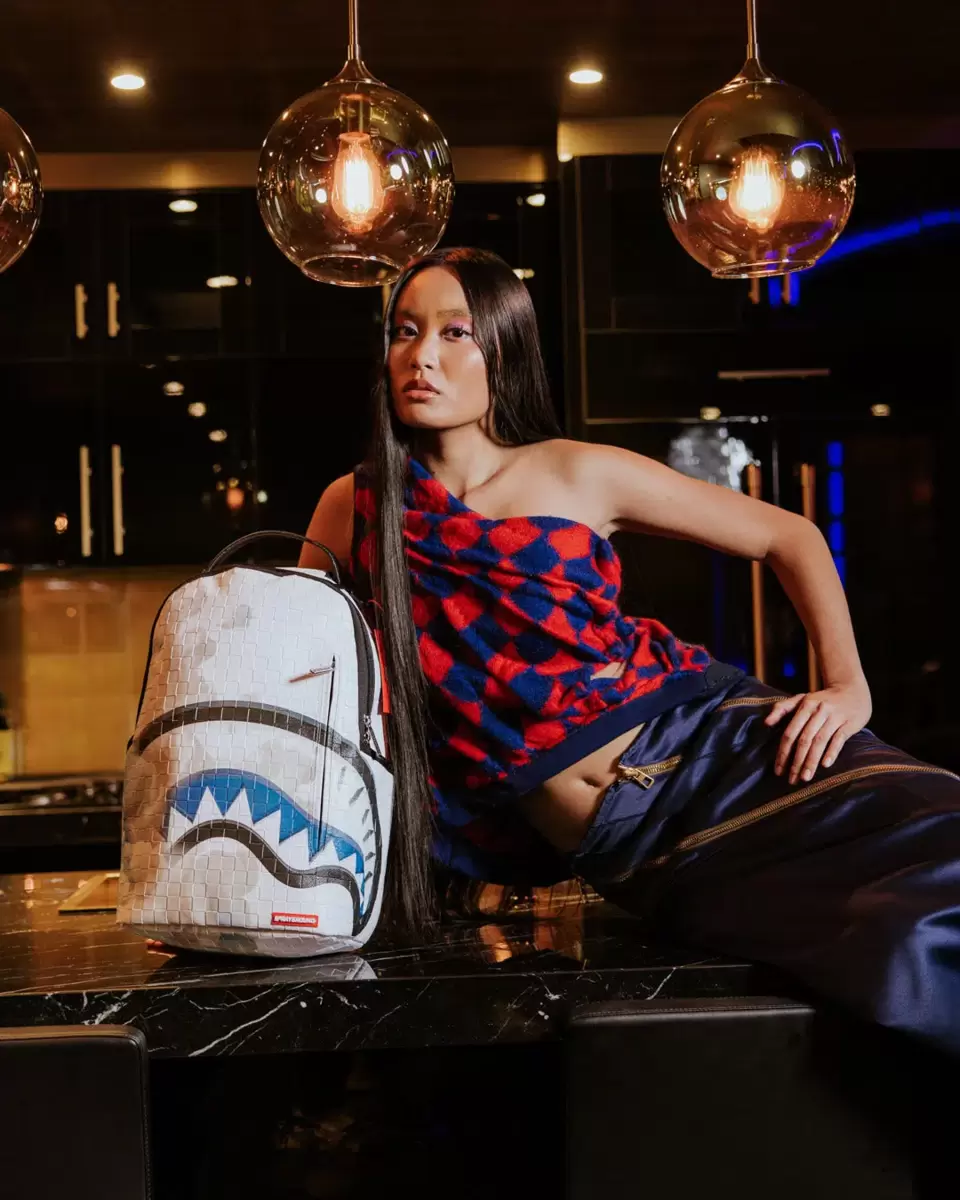 Dimensioni: 18″ x 6″ x 11,5″ Tasca frontale con cerniera Tasche laterali Tasca portaoggetti con cerniera Scomparto separato in velluto per occhiali da sole Imbottitura posteriore ergonomica in rete Cinghie regolabili per una vestibilità personalizzata Cerniere dorate con hardware in metallo Stemma “Sprayground Authentic” in metallo La manica posteriore scorrevole si collega al bagaglio a mano per avere le mani libere