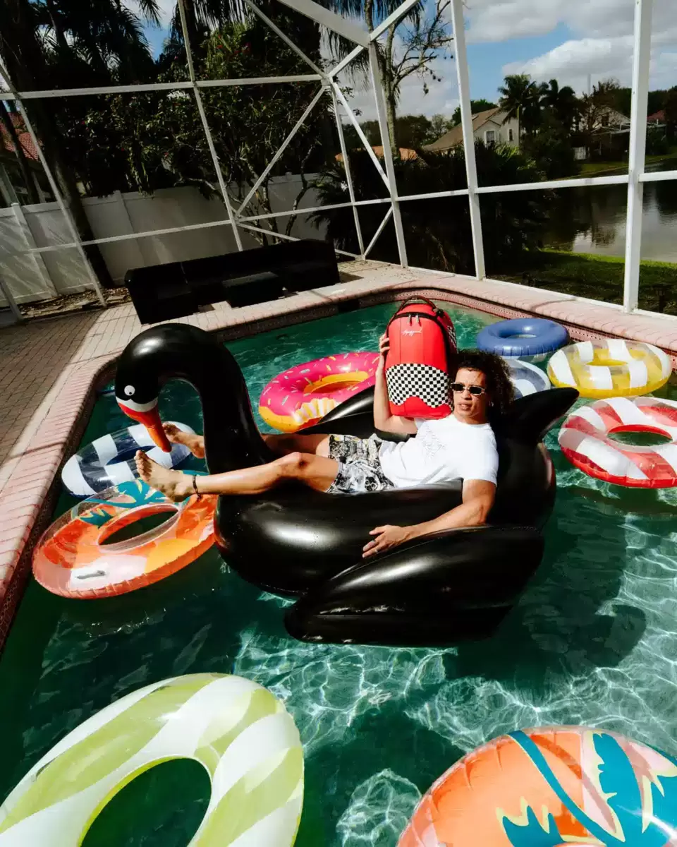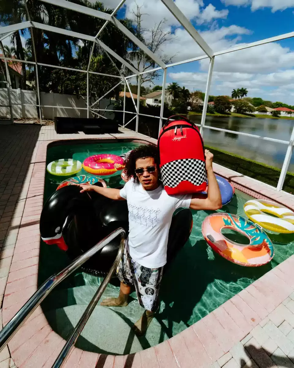 Dimensioni: 45,7 x 15,2 x 29,7 cm Tasca frontale con cerniera Tasche laterali Tasca portaoggetti con cerniera Scomparto separato in velluto per occhiali da sole Imbottitura posteriore ergonomica in rete Cinghie regolabili per una vestibilità personalizzata Cerniere dorate con parti metalliche Stemma in metallo “Sprayground Authentic” La manica posteriore scorrevole si collega al bagaglio a mano per avere le mani libere