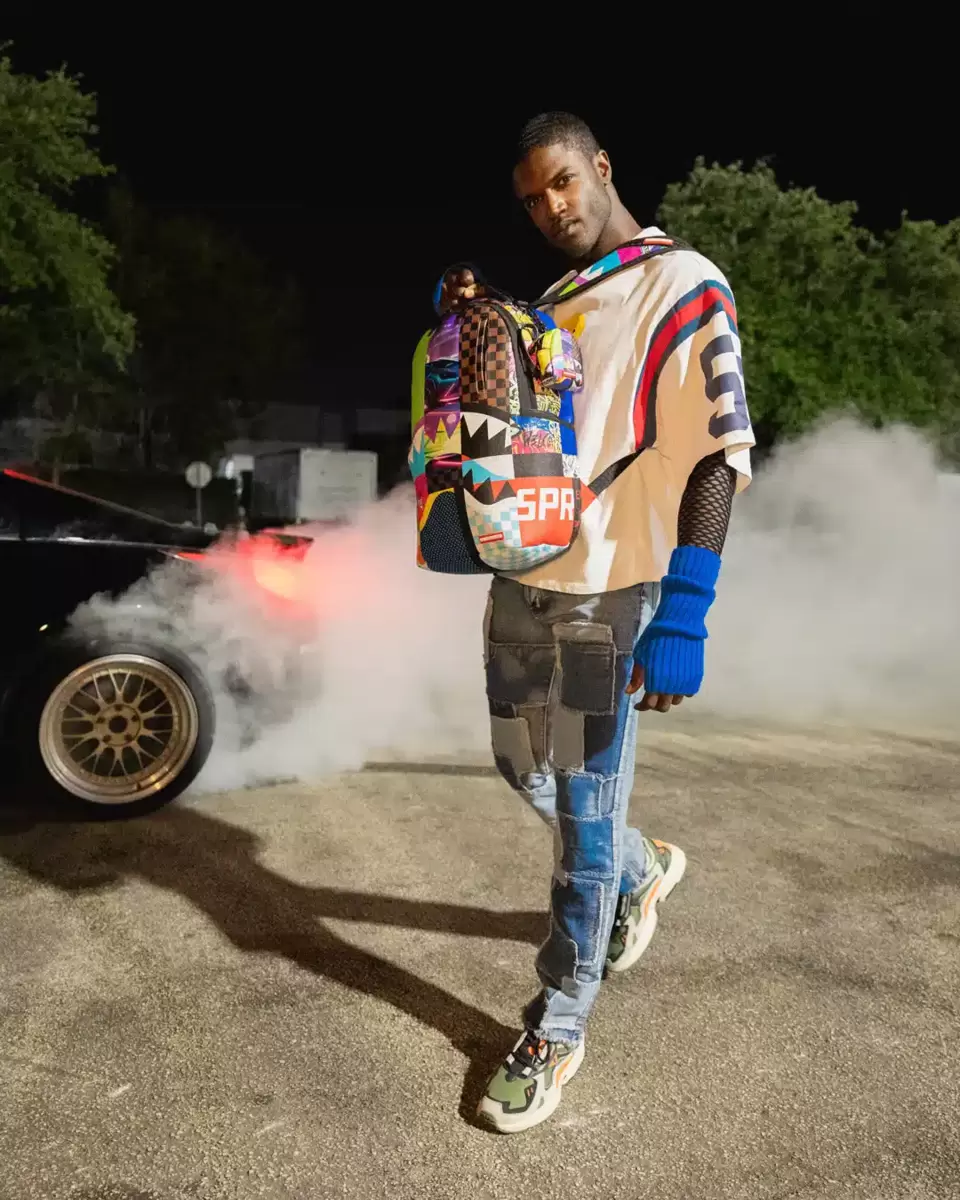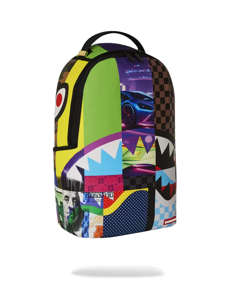 Dimensioni: 45,7 x 15,2 x 29,7 cm Tasca frontale con cerniera Tasche laterali Tasca portaoggetti con cerniera Scomparto separato in velluto per occhiali da sole Imbottitura posteriore ergonomica in rete Cinghie regolabili per una vestibilità personalizzata Cerniere dorate con ferramenta in metallo Stemma in metallo “Sprayground Authentic” La tasca posteriore scorrevole si collega al bagaglio a mano per avere le mani libere