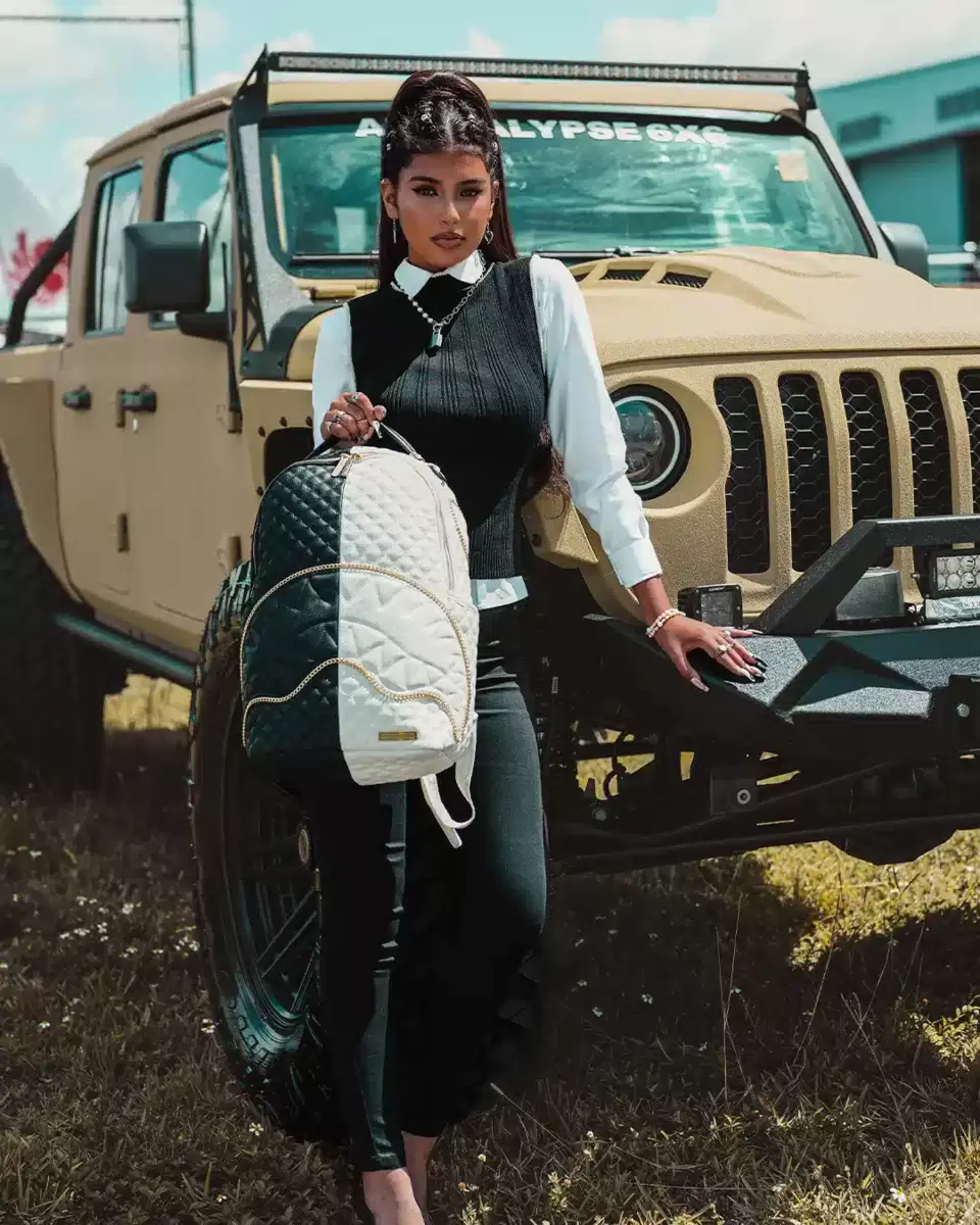 Dimensioni: 45,7 x 15,2 x 29,7 cm Tasca frontale con cerniera Tasche laterali Tasca portaoggetti con cerniera Scomparto separato in velluto per occhiali da sole Imbottitura posteriore ergonomica in rete Cinghie regolabili per una vestibilità personalizzata Cerniere dorate con minuteria metallica Stemma in metallo “Sprayground Authentic” La tasca posteriore scorrevole si collega al bagaglio a mano per avere le mani libere