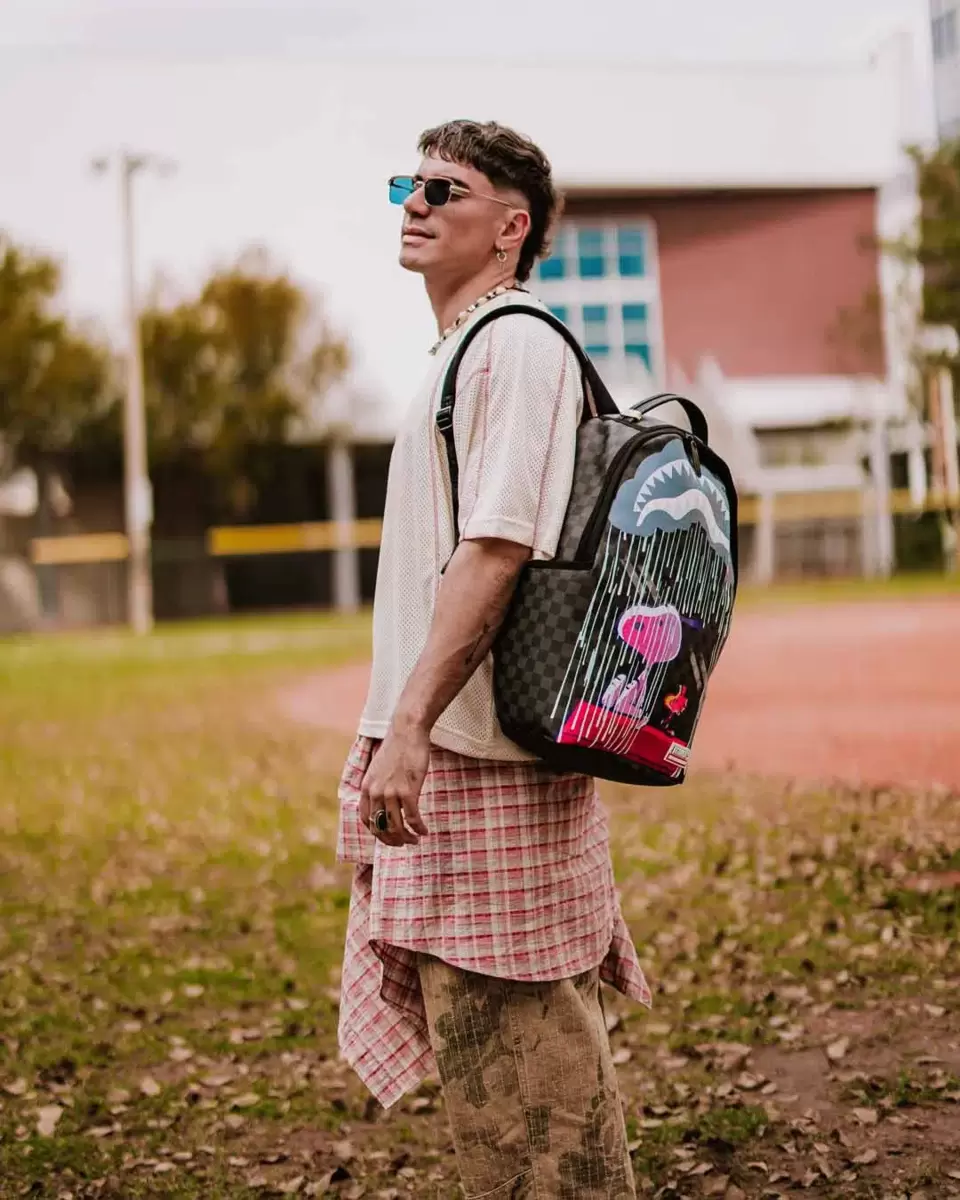 Dimensioni: 45,7 x 15,2 x 29,7 cm Tasca frontale con cerniera Tasche laterali Tasca portaoggetti con cerniera Scomparto separato in velluto per occhiali da sole Imbottitura posteriore ergonomica in rete Cinghie regolabili per una vestibilità personalizzata Cerniere dorate con ferramenta in metallo Stemma in metallo “Sprayground Authentic” La tasca posteriore scorrevole si collega al bagaglio a mano per avere le mani libere