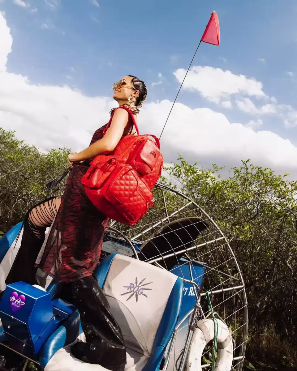 Dimensioni: 18″ x 6″ x 11,5″ Tasca frontale con cerniera Tasche laterali Tasca portaoggetti con cerniera Scomparto separato in velluto per occhiali da sole Imbottitura posteriore ergonomica in rete Cinghie regolabili per una vestibilità personalizzata Cerniere dorate con hardware in metallo Stemma “Sprayground Authentic” in metallo La manica posteriore scorrevole si collega al bagaglio a mano per avere le mani libere