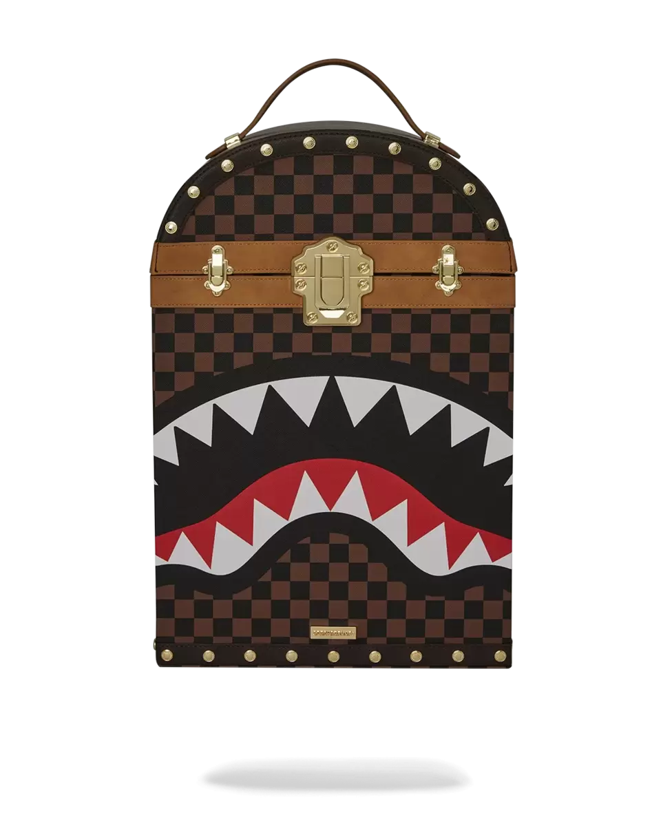 | Zaino rigido con fodera in PVC a quadri. Dettagli applicati in pelle PVC con borchie piatte in metallo goffrato. Manico in pelle PVC. Hardware in ottone, inclusa una serratura in ottone. Tre tasche interne per riporre gli oggetti. |