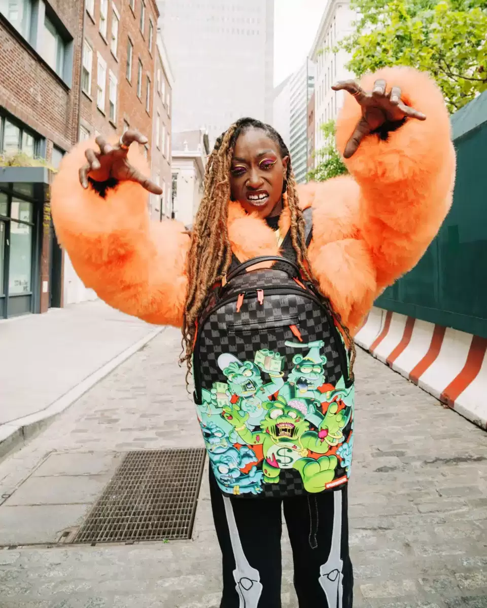 Dimensioni: 18″ x 6″ x 11,5″ Tasca frontale con cerniera Tasche laterali Tasca portaoggetti con cerniera Scomparto separato in velluto per occhiali da sole Imbottitura posteriore ergonomica in rete Cinghie regolabili per una vestibilità personalizzata Cerniere dorate con hardware in metallo Stemma “Sprayground Authentic” in metallo La manica posteriore scorrevole si collega al bagaglio a mano per avere le mani libere